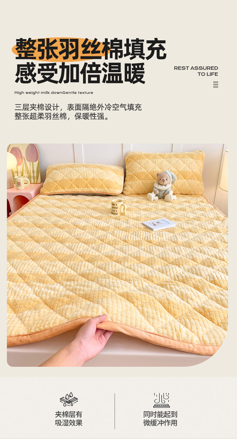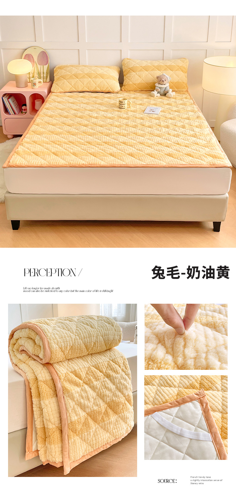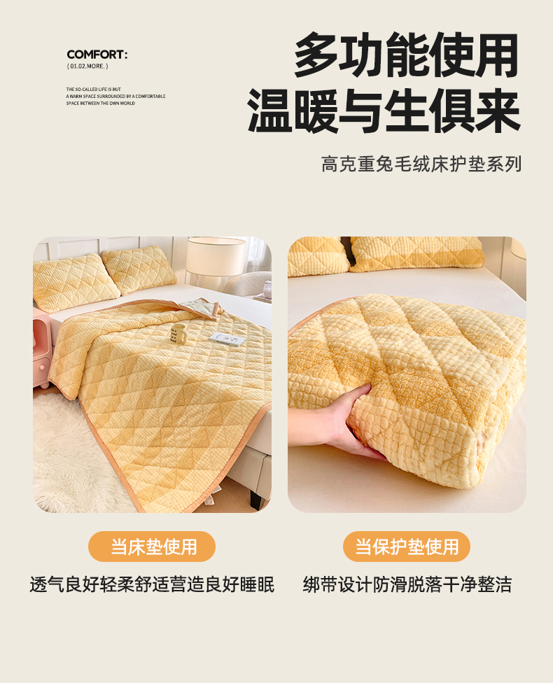 当前位置: 91家纺网 > 商品网购 > 床垫/床褥 > 普通床垫 > 福来临家纺 2025新款高克重兔毛绒床垫 兔毛床垫-奶油黄