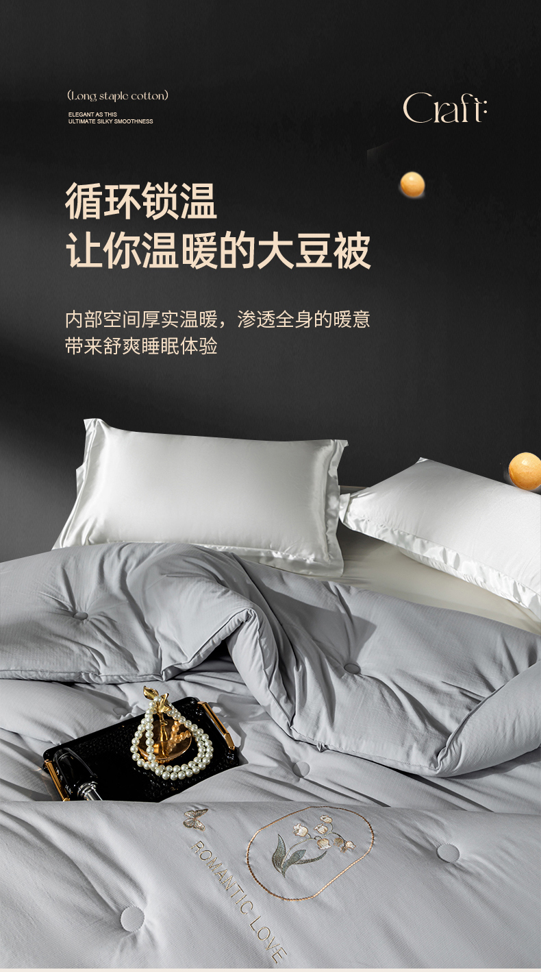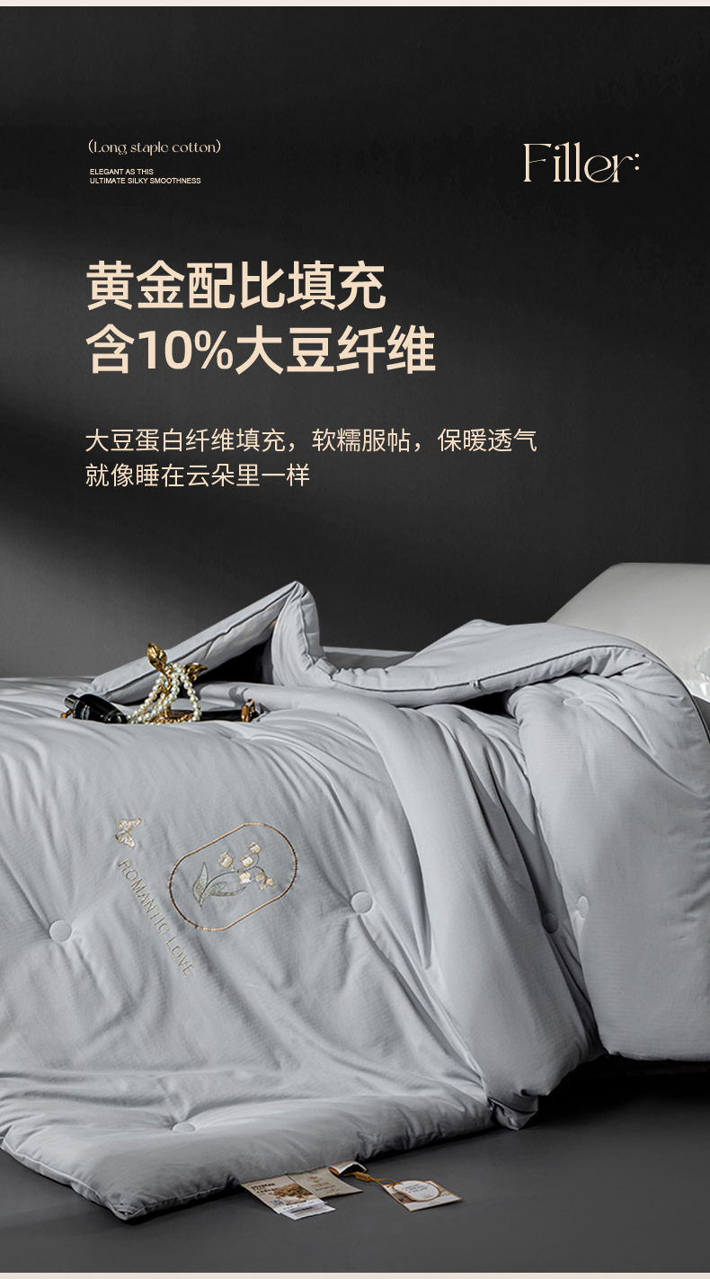 小牛席业 2024年秋冬新品冬被幸运铃兰大豆被系列 幸运铃兰-大豆被系列(灰色)