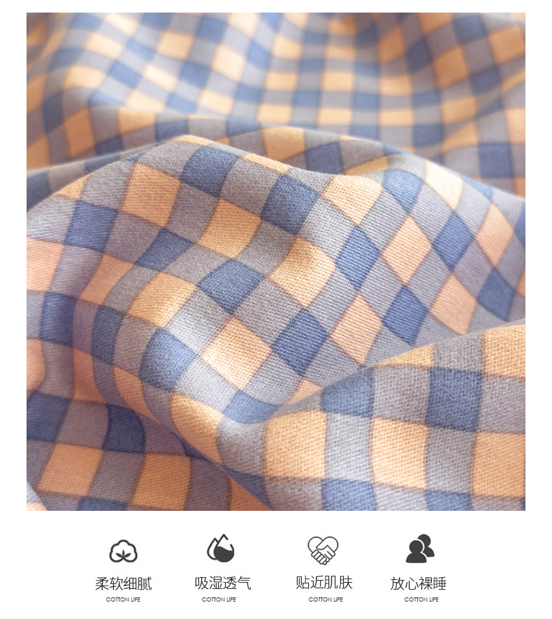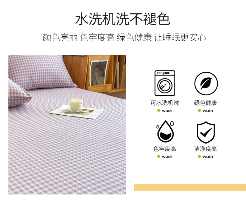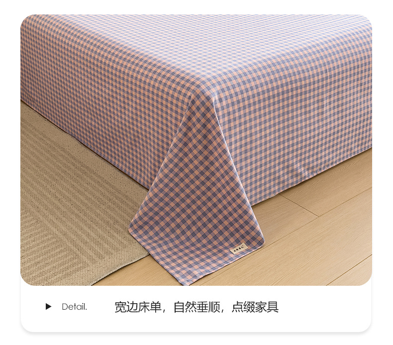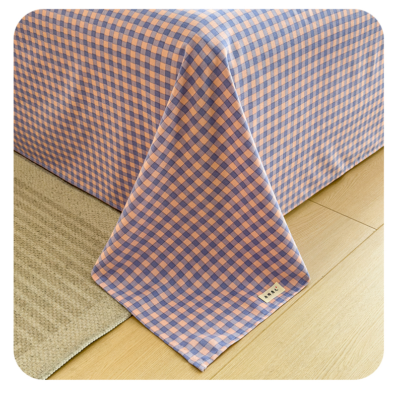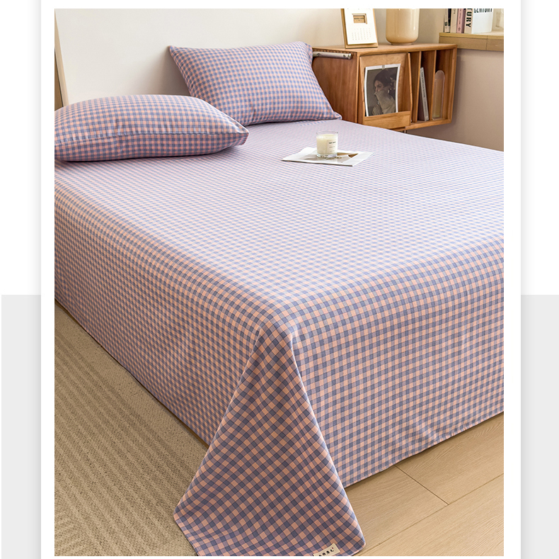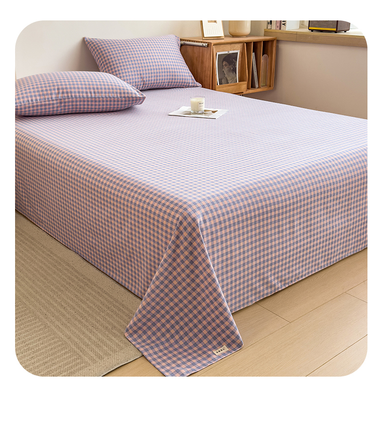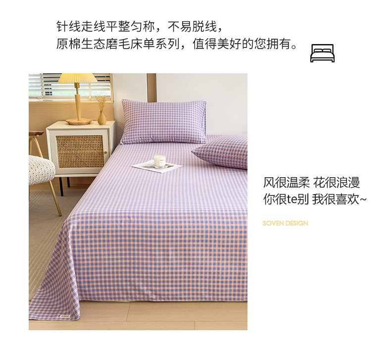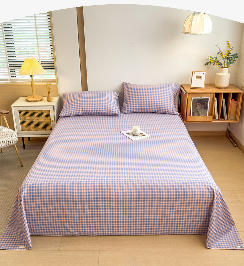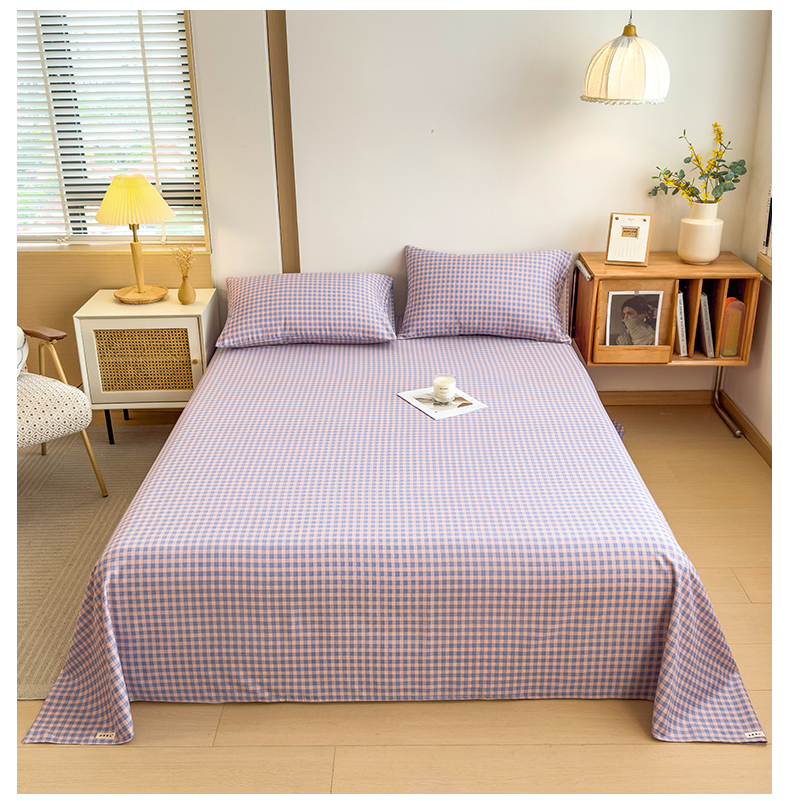 芃成家纺 2024新款原棉加厚生态磨毛单床单 幸运小格-紫粉
