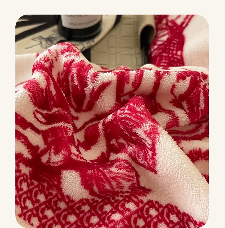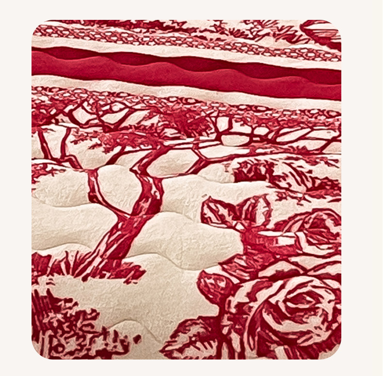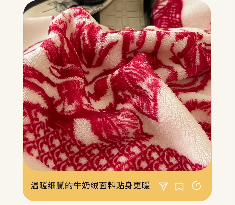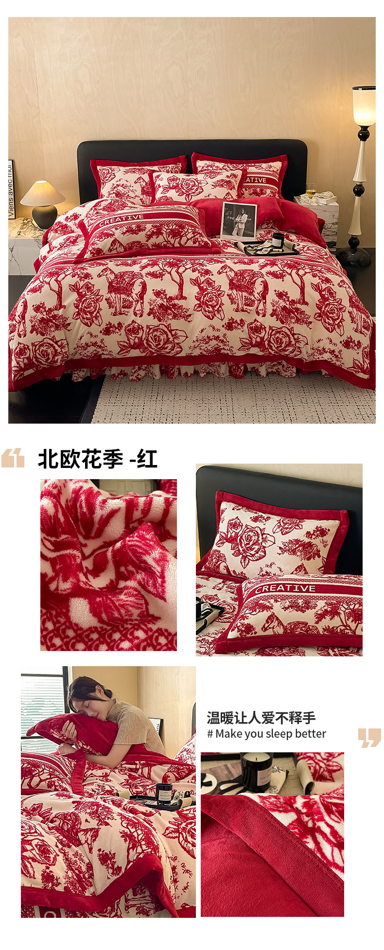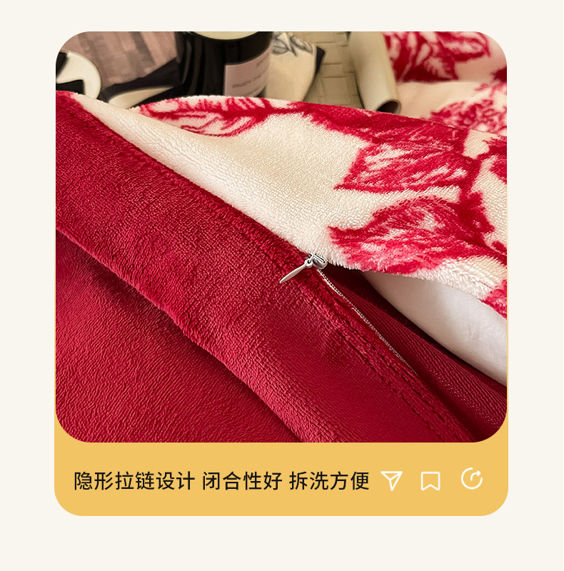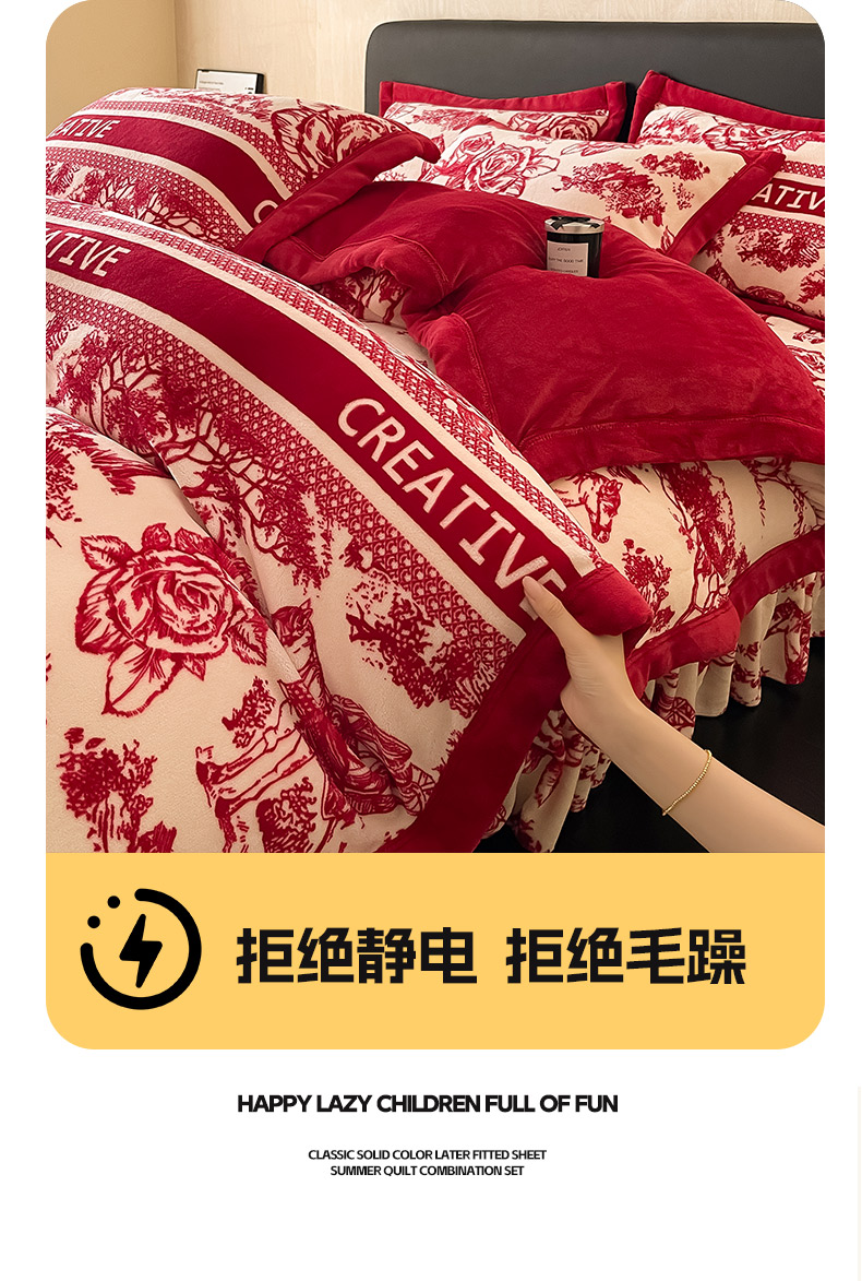商品名称:茉保家纺 2024新款包边款印花牛奶绒床盖四件套 北欧花季 -红