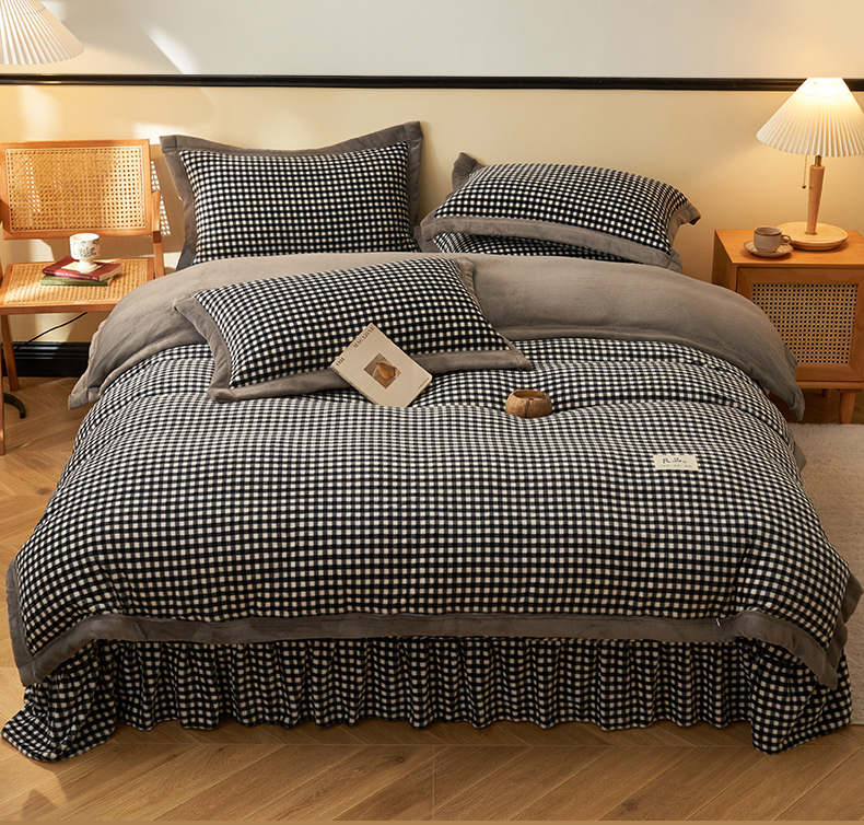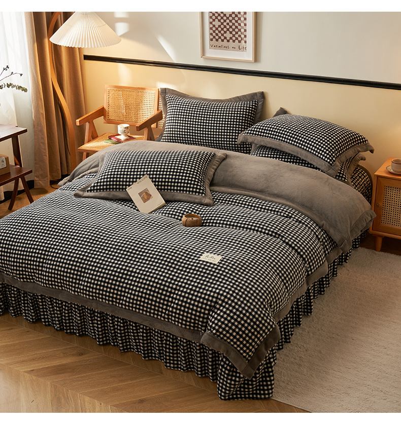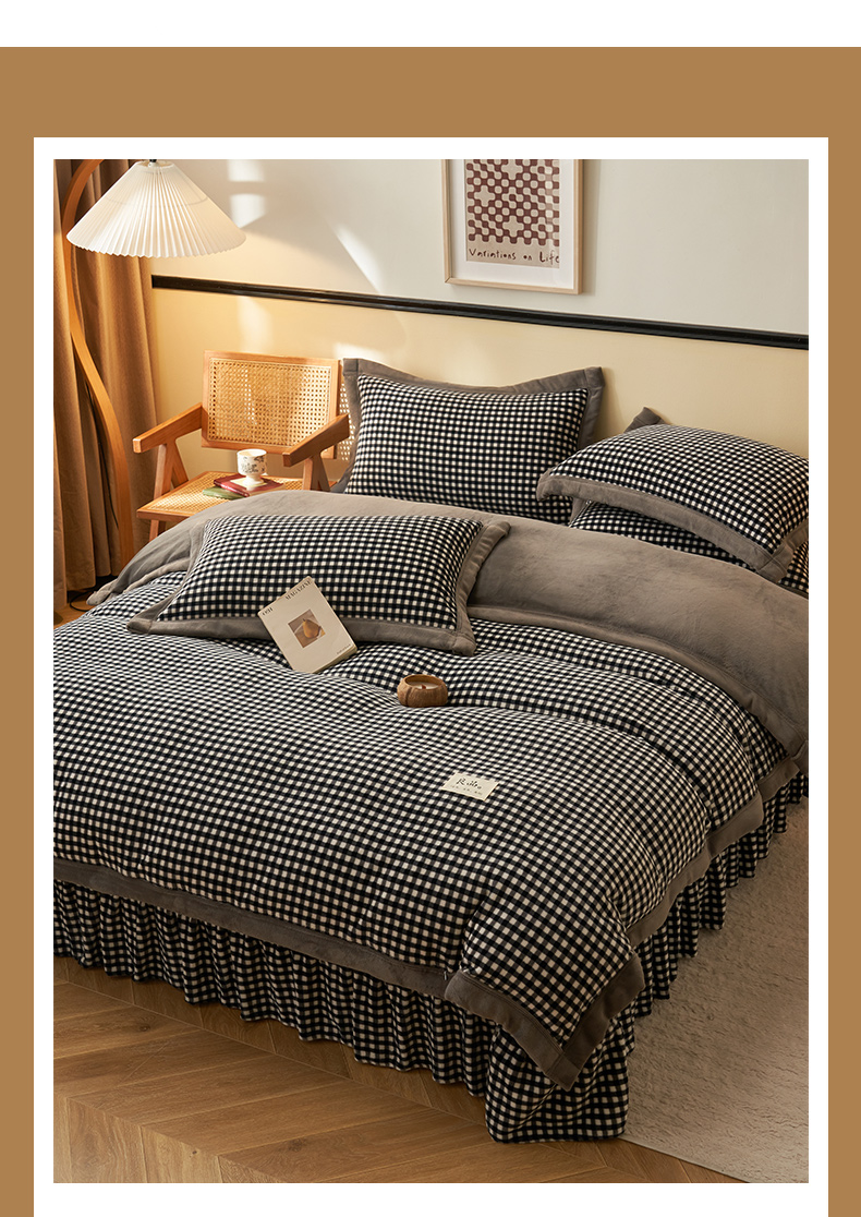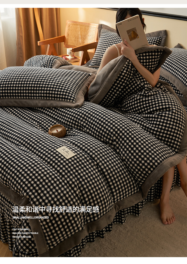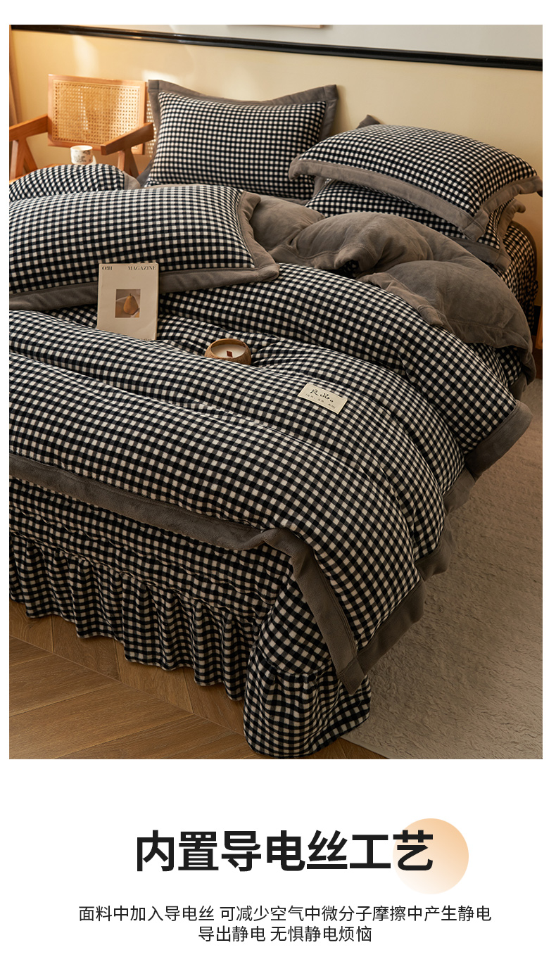 (总)茉保家纺 2025新款无印风款牛奶绒床盖四件套,粉小格,黑大格,黑小格,红小格,咖小格,蓝大格,蓝小格,绿大格,紫小格