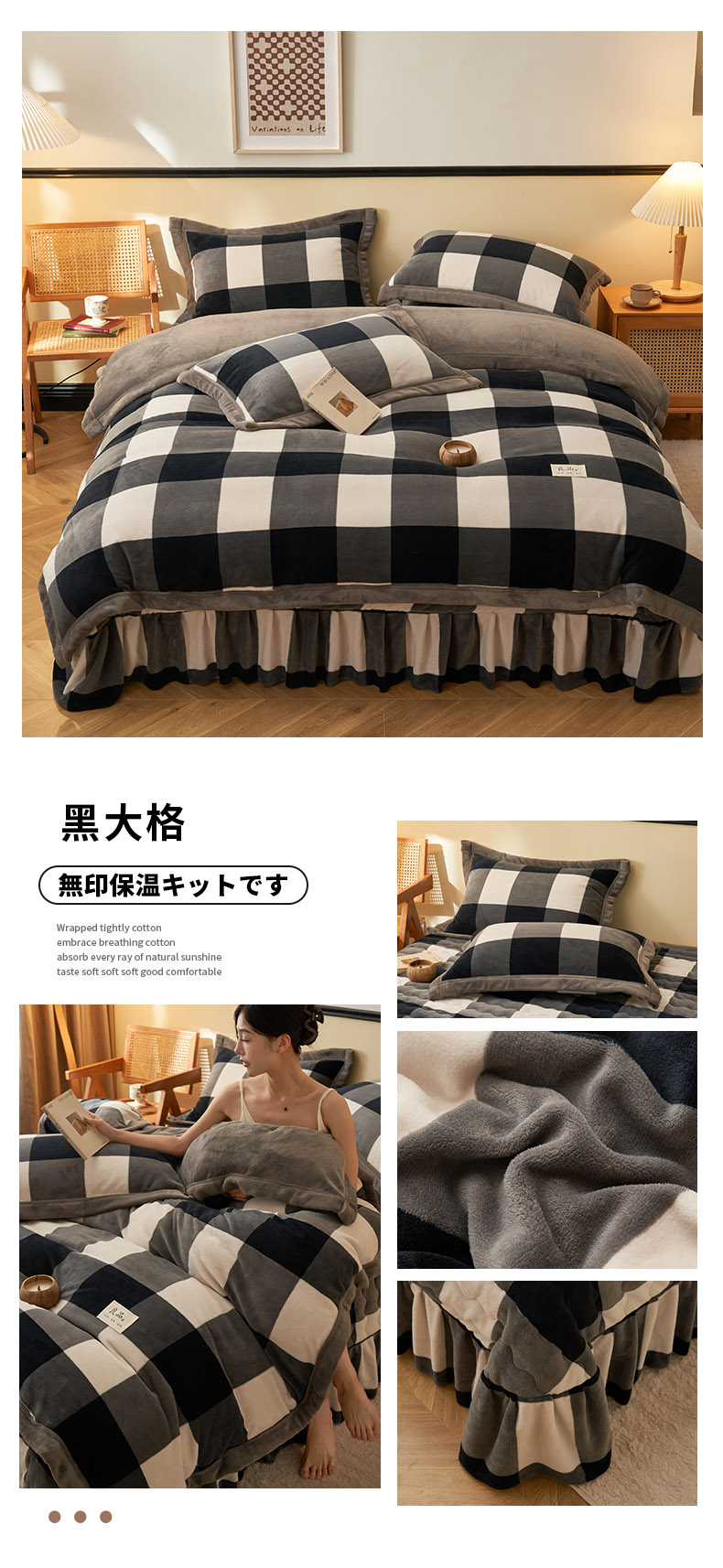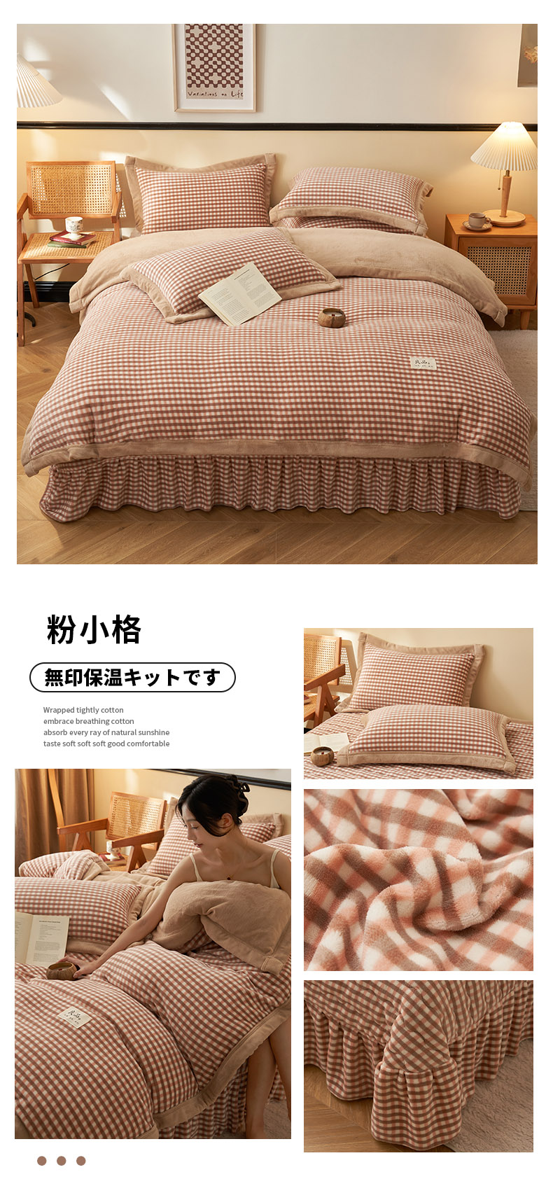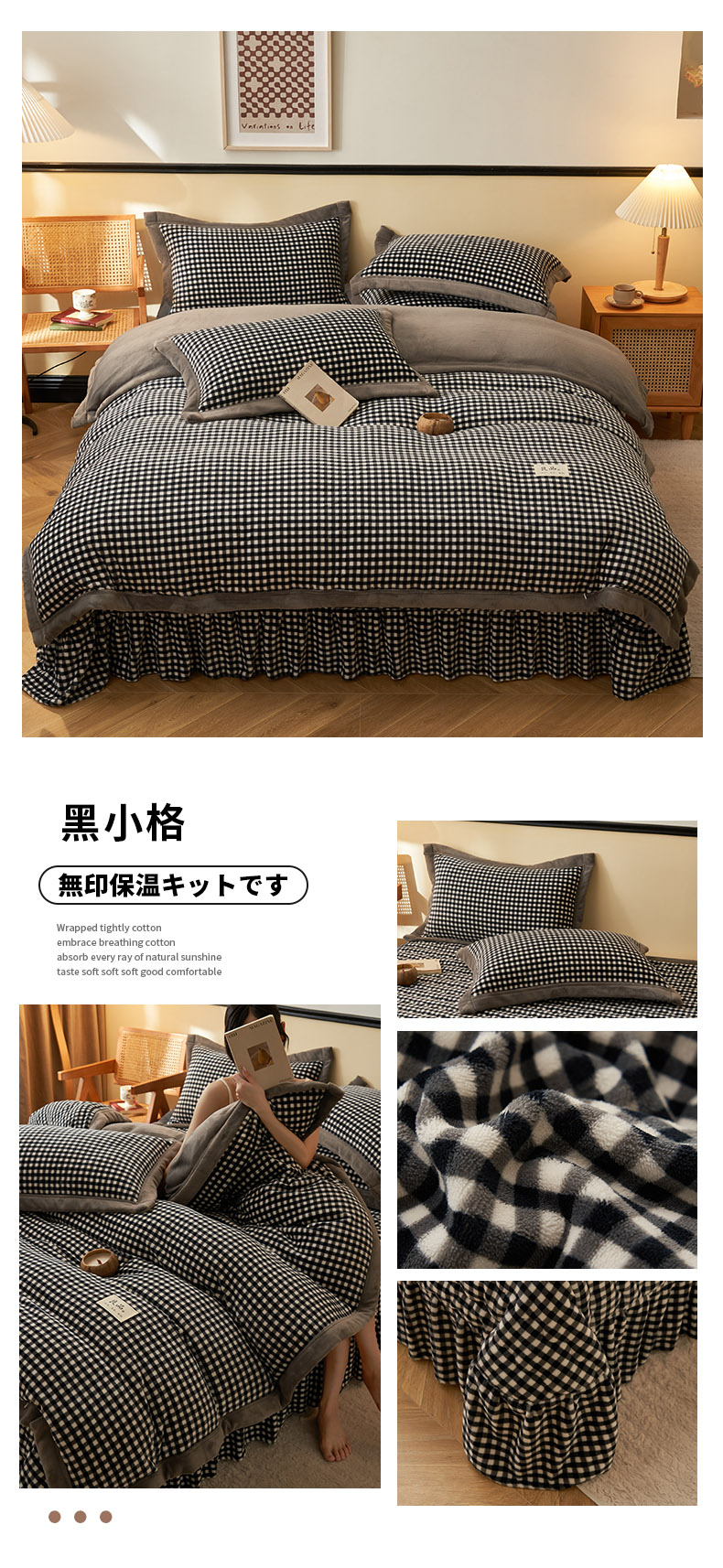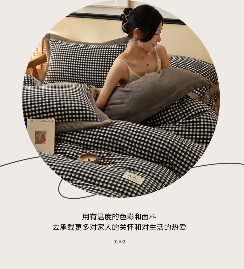 (总)茉保家纺 2025新款无印风款牛奶绒床盖四件套,粉小格,黑大格,黑小格,红小格,咖小格,蓝大格,蓝小格,绿大格,紫小格
