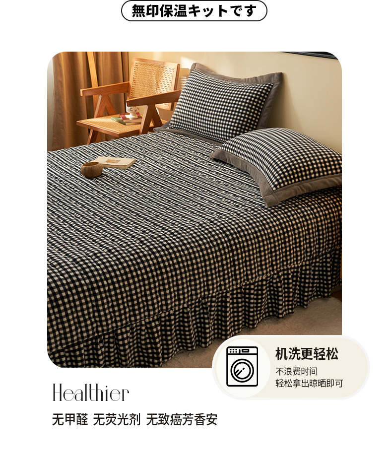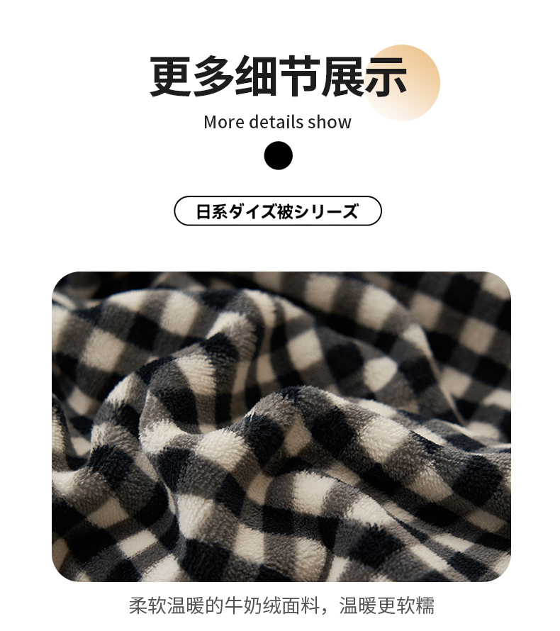 (总)茉保家纺 2025新款无印风款牛奶绒床盖,粉小格,黑大格,黑小格,蓝大格,蓝小格,绿大格,红小格,咖小格,紫小格