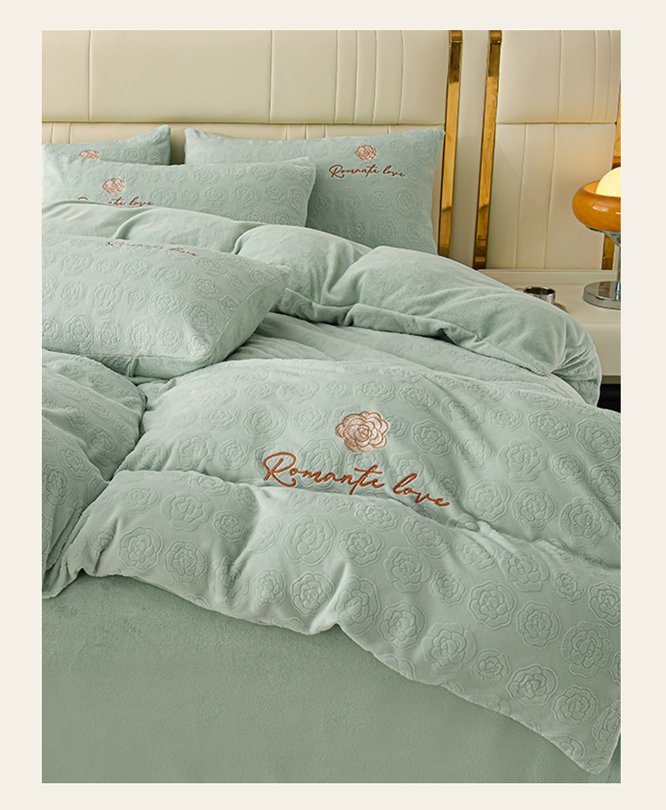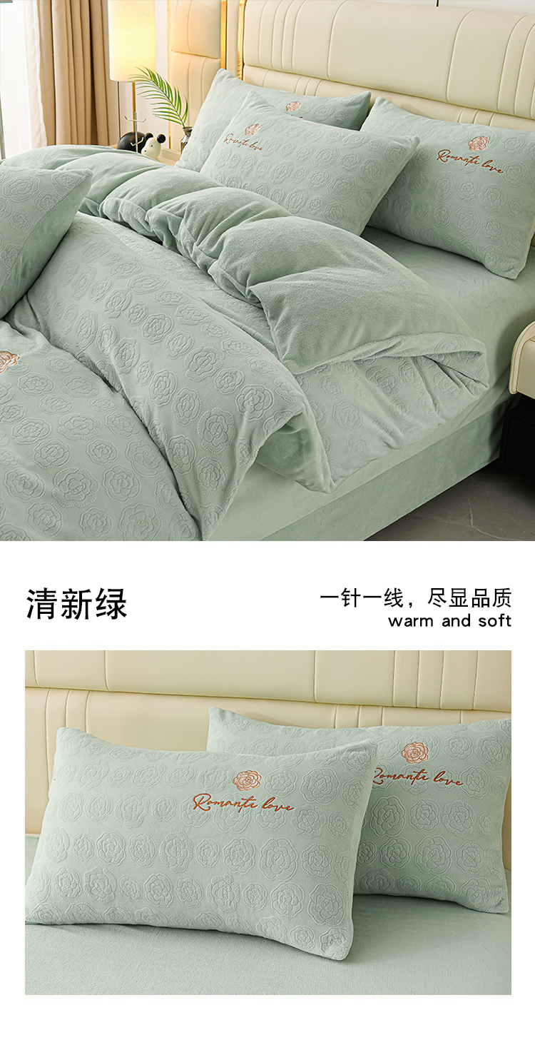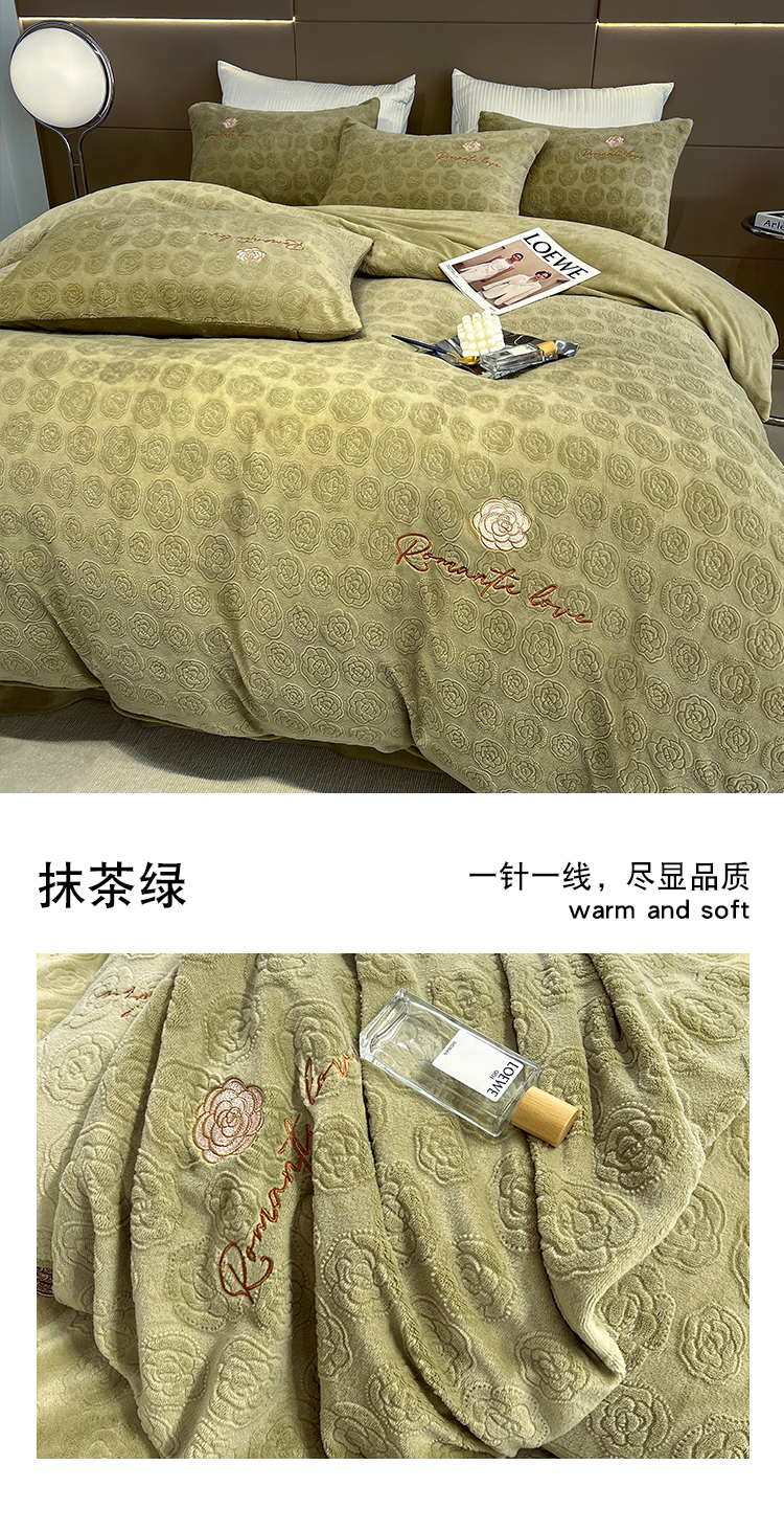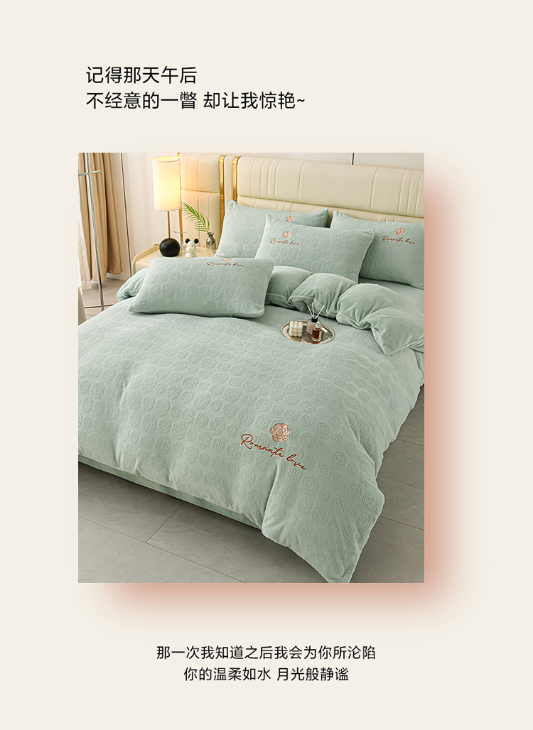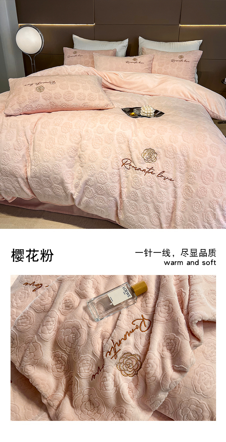 (总)眠多宝 2024新款纯色牛奶雕花绒刺绣四件套