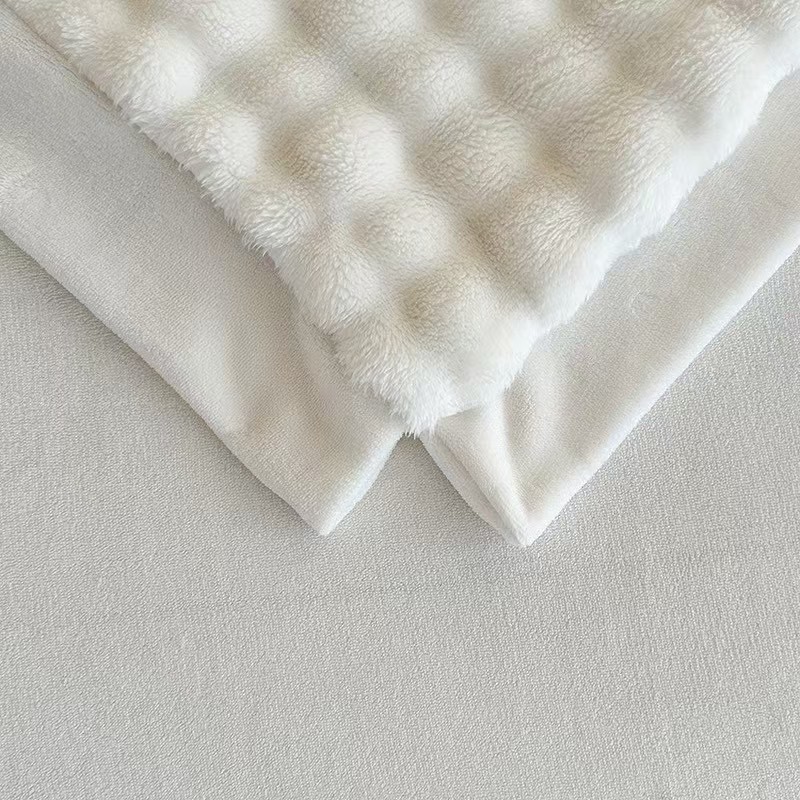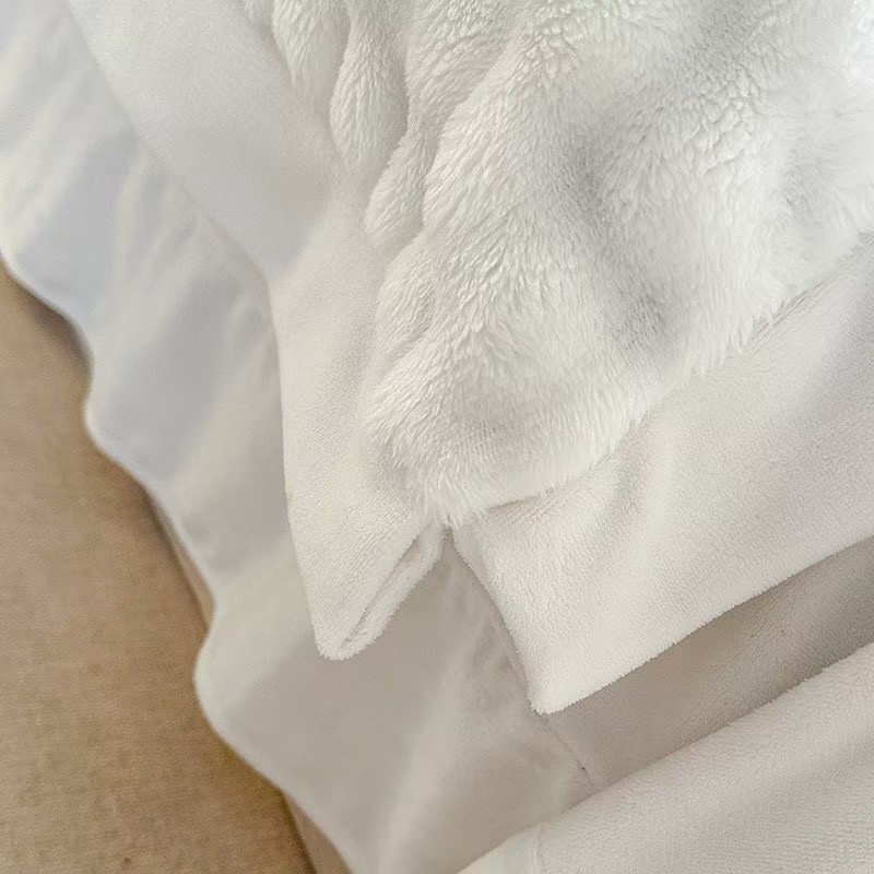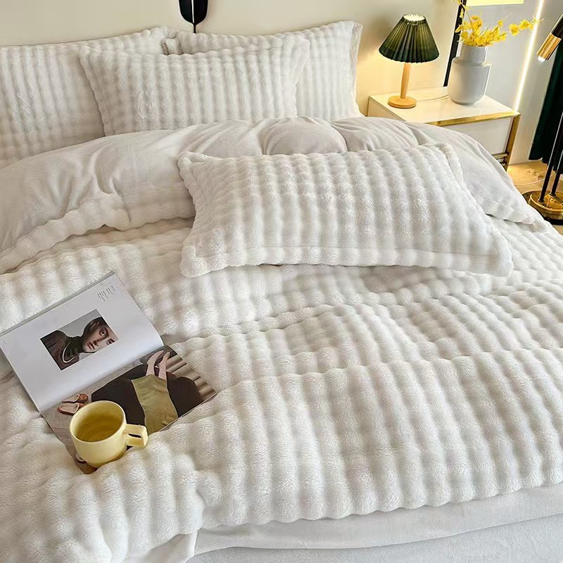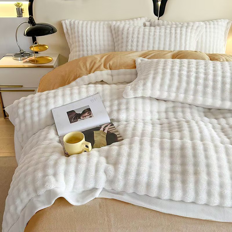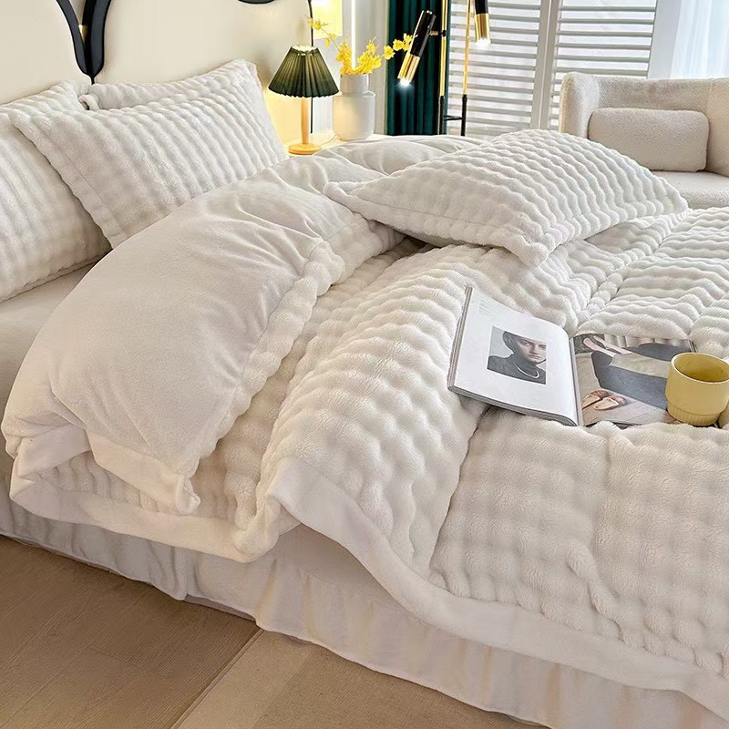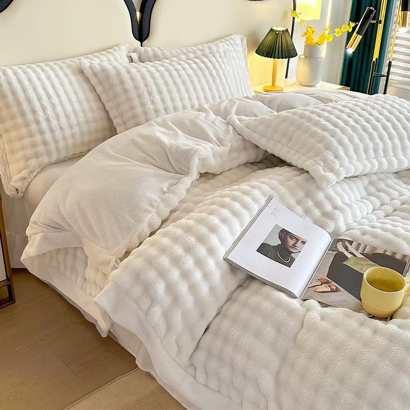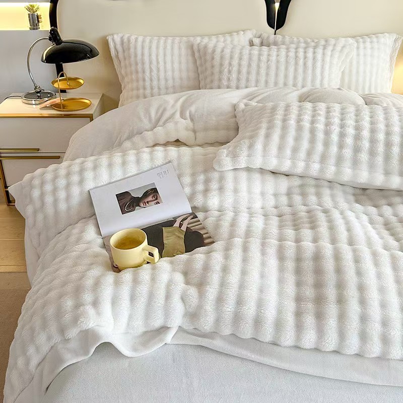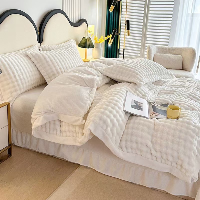 玖琳家纺 2024新款A类大泡泡懒兔毛绒+牛奶绒四件套 白色