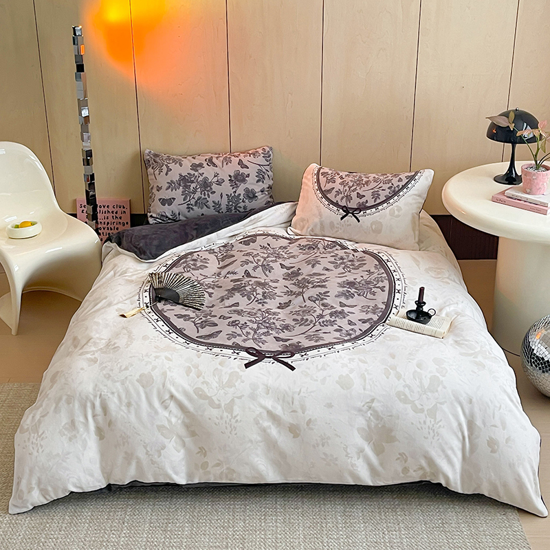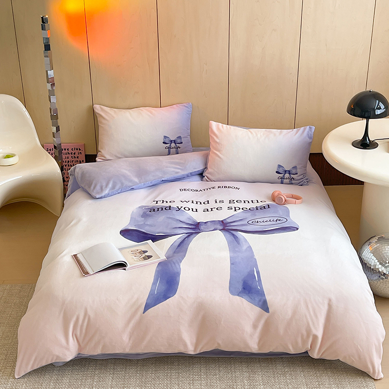 昔可家纺 2024新款大版数码印花设计师牛奶绒四件套 渐变蝴蝶结