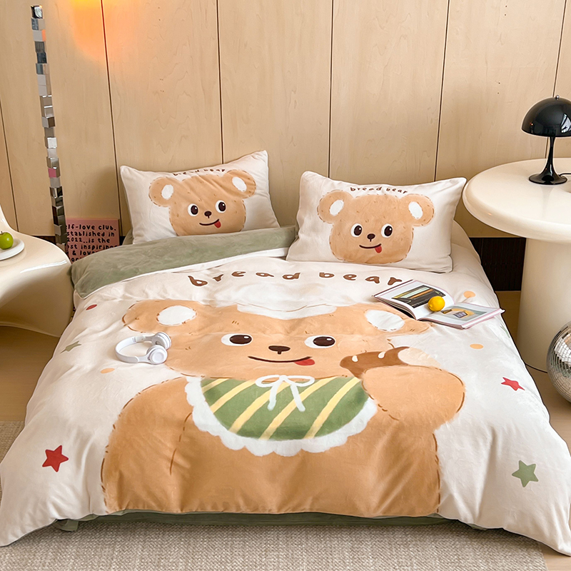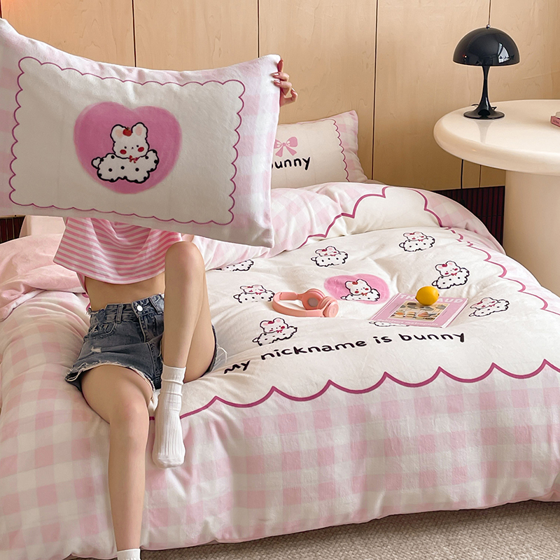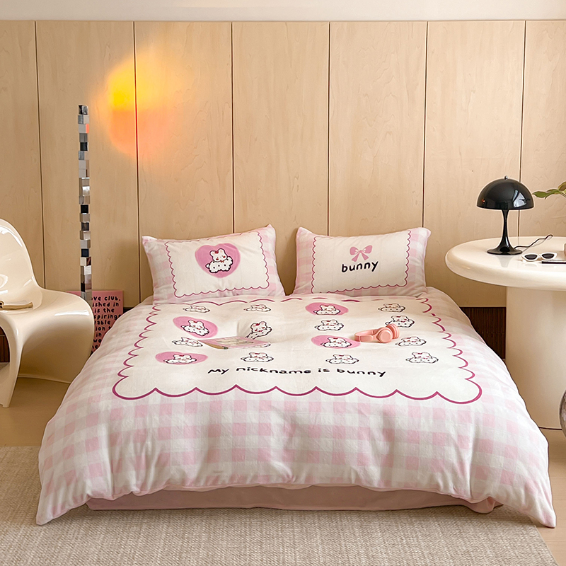 (总)昔可家纺 2024新款印花牛奶绒四件套系列-洛丽塔风,萝莉小兔,小熊烘焙屋,小熊玩偶屋