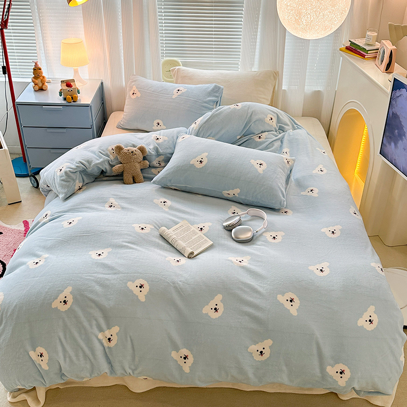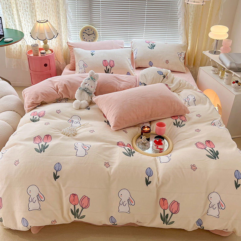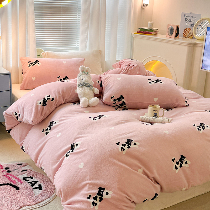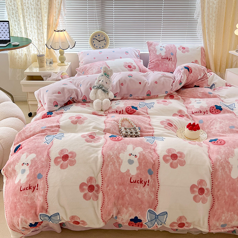 (总)昔可家纺 2024新款印花牛奶绒四件套系列-洛丽塔风,萝莉小兔,小熊烘焙屋,小熊玩偶屋