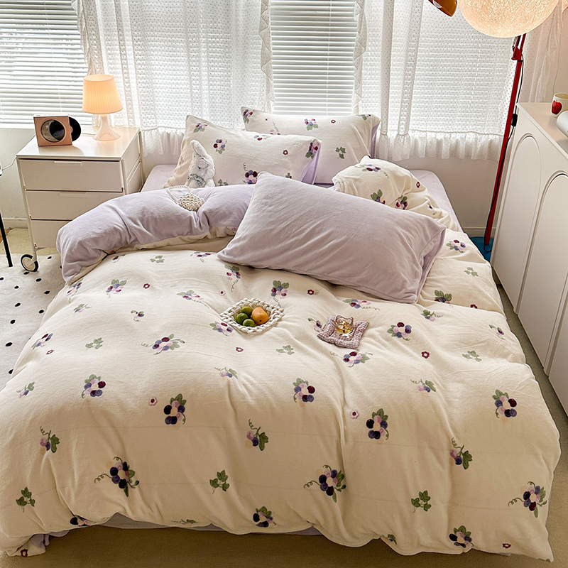 (总)昔可家纺 2023新款全棉小花系列四件套,柏林少女,小小的樱桃,紫色葡萄