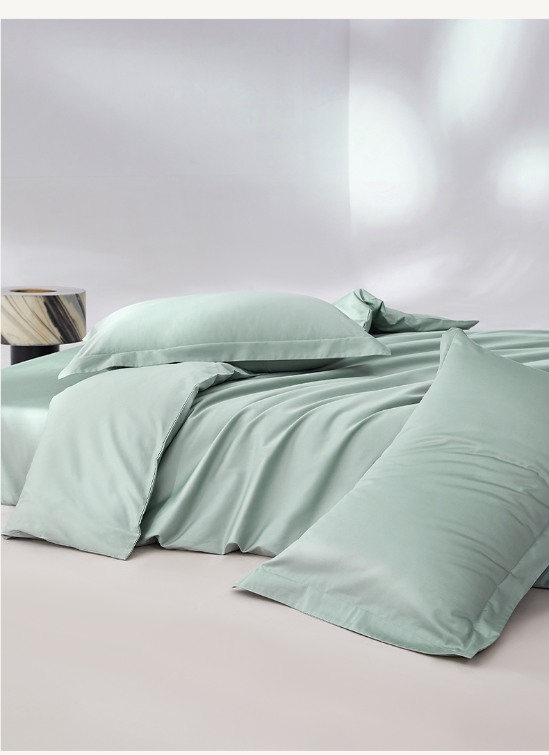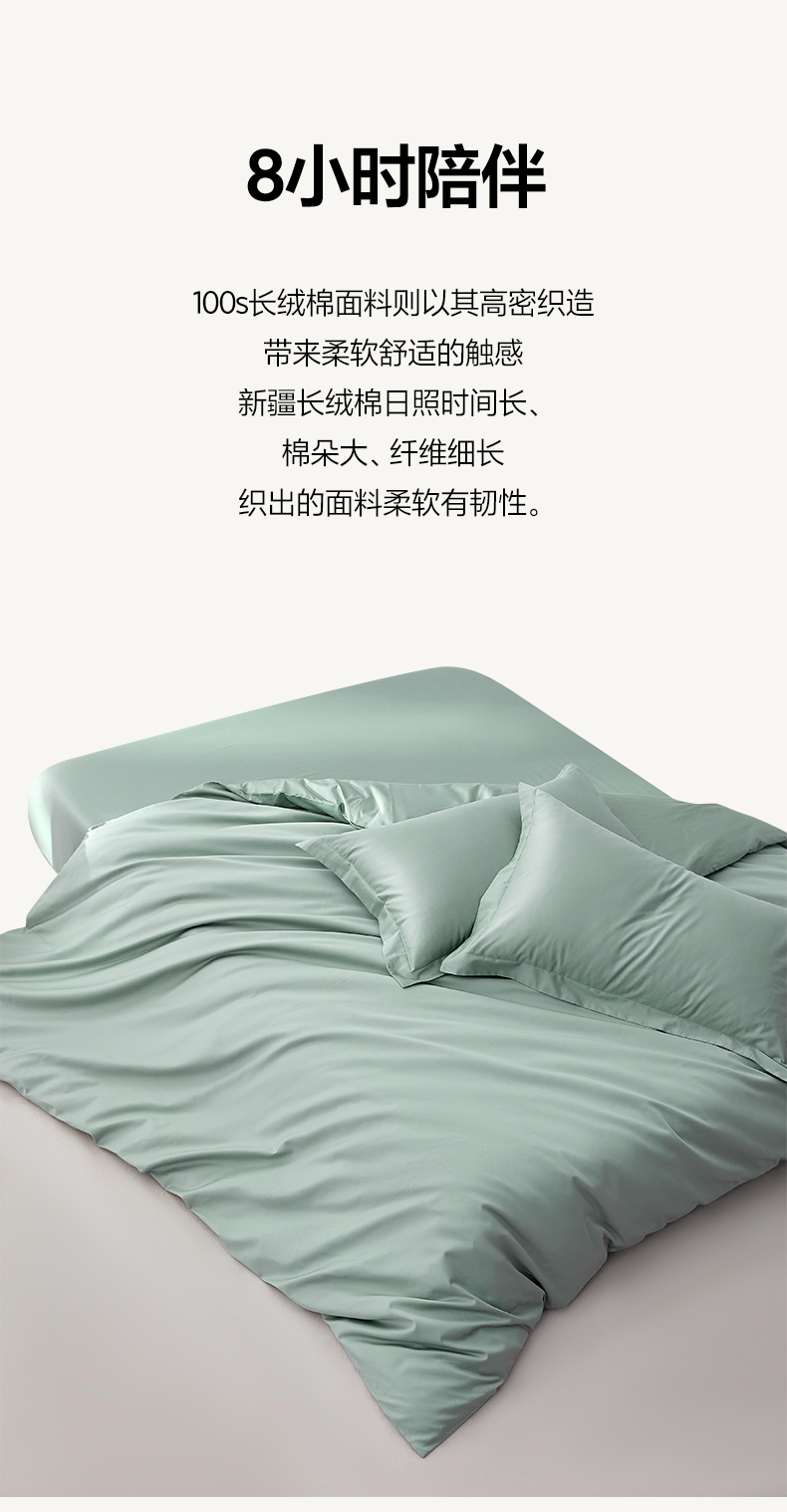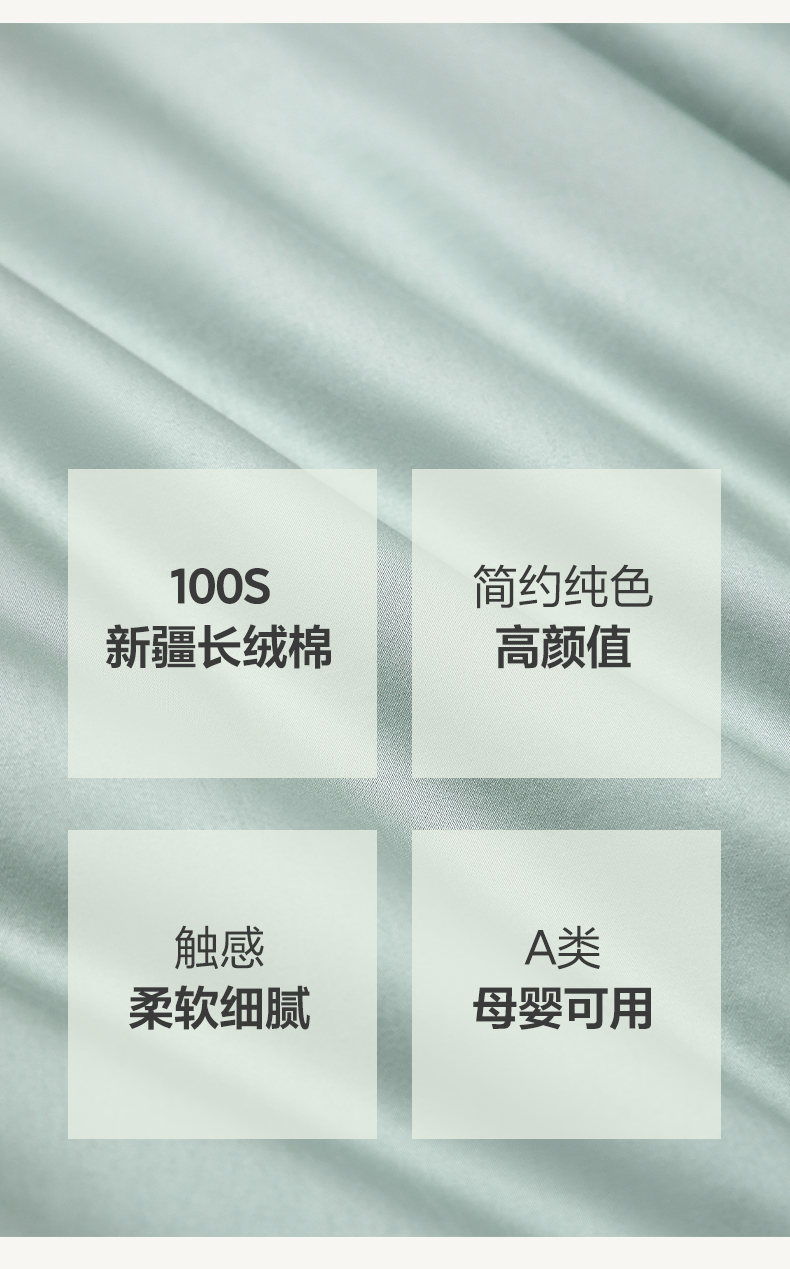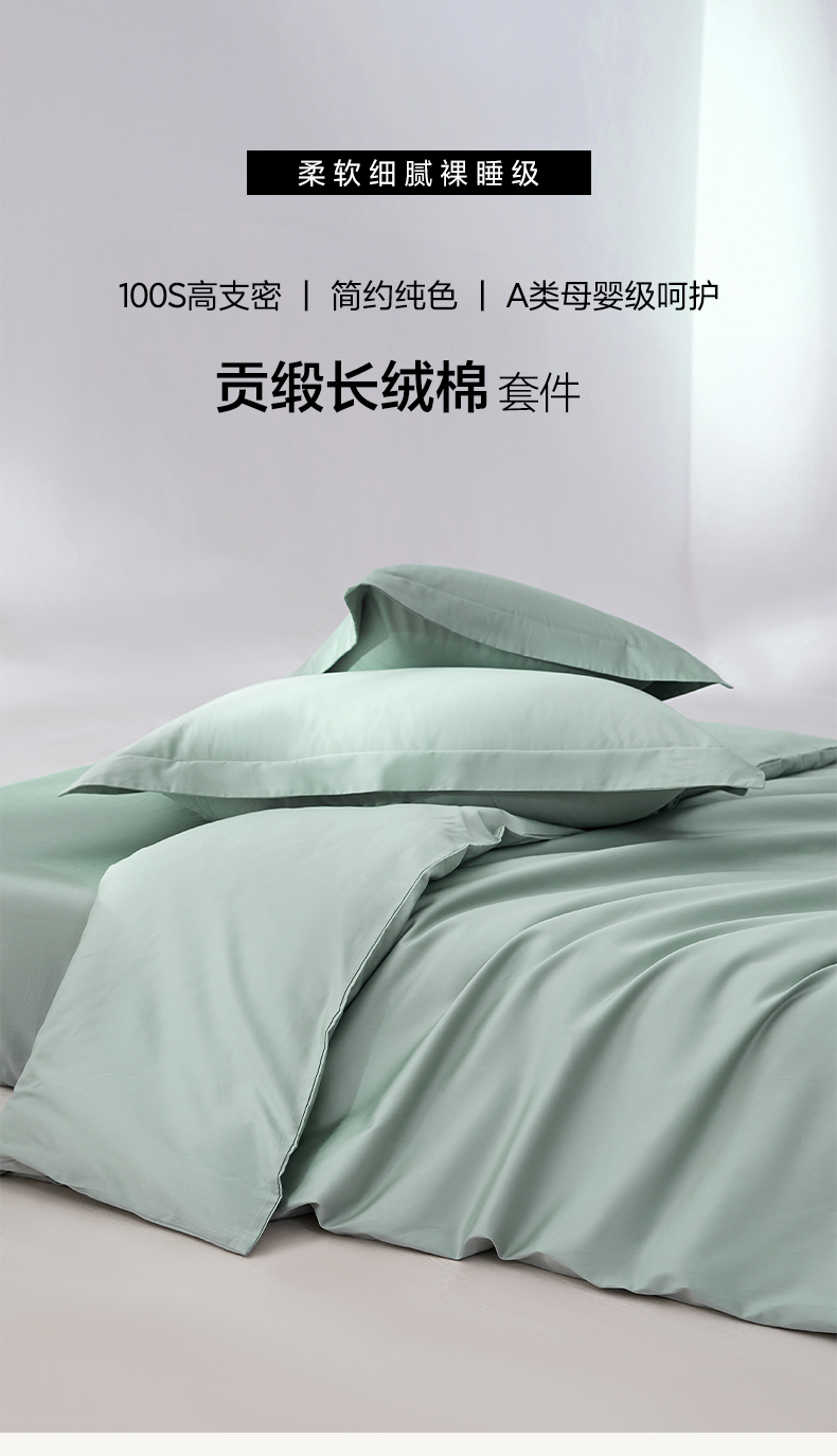 当前位置: 91家纺网 > 商品网购 > 床品套件 > 四件套 > 长绒棉四件套 > 轩和家居 2024新款A类50S贡缎长绒棉四件套系列 薄荷绿