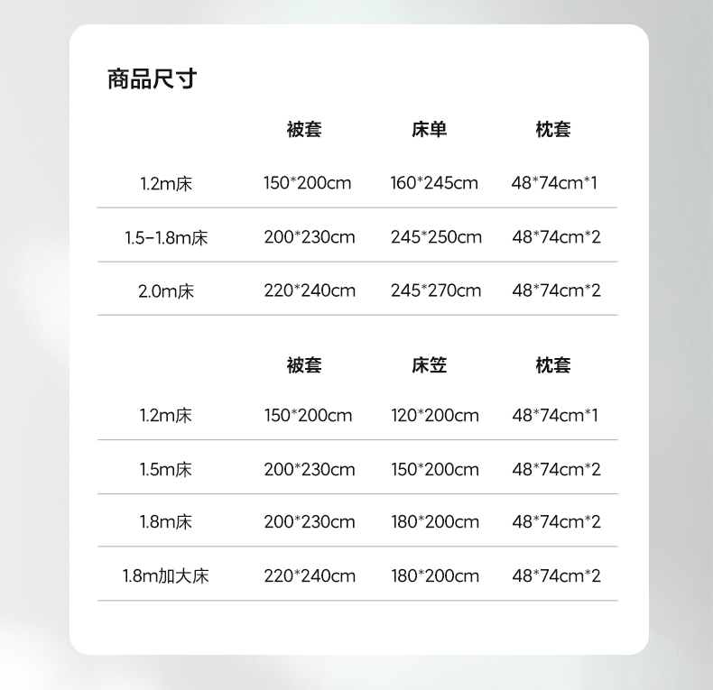 1.8m床笠款被套加大四件套 | ¥190.00 |