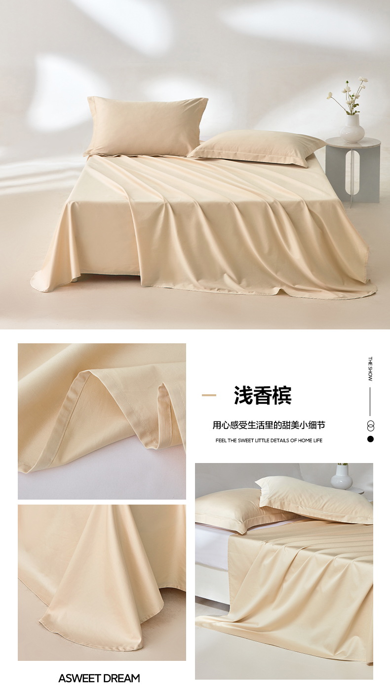 商品名称:轩和家居 2024新款A类50S贡缎长绒棉单床单系列 奶芋黄