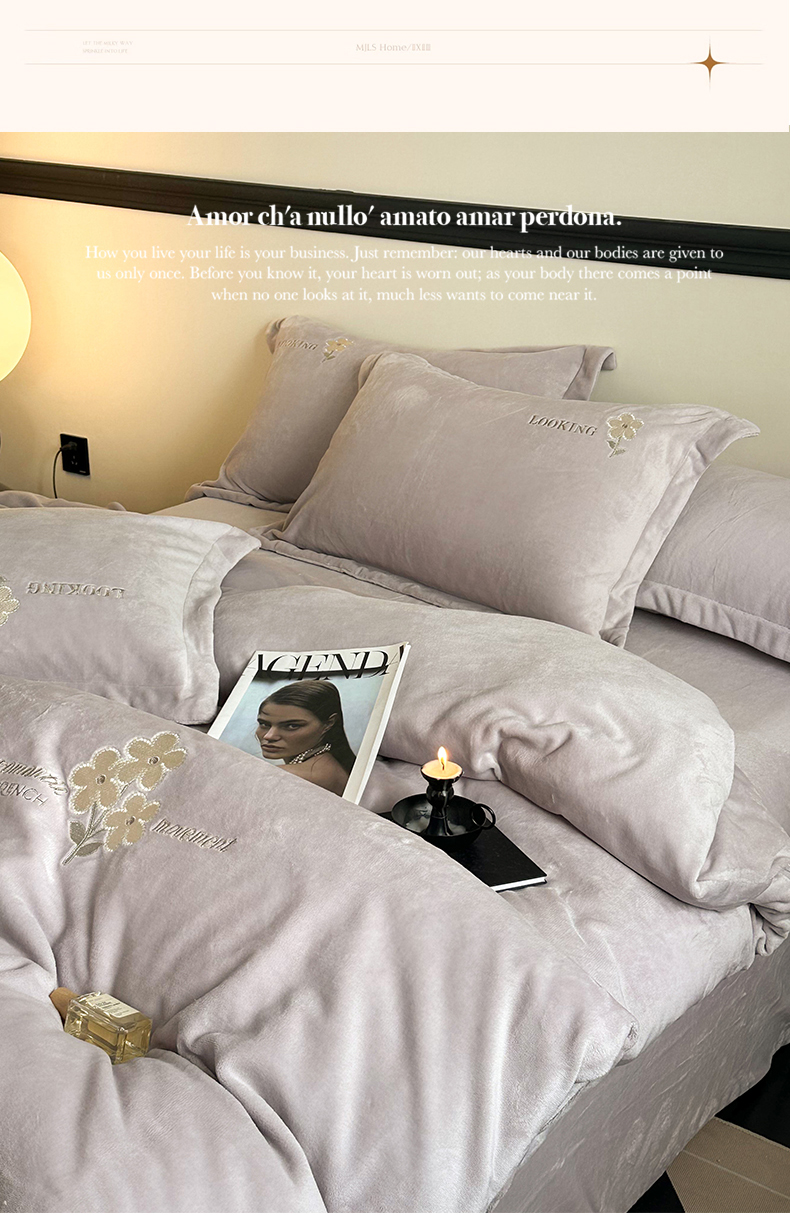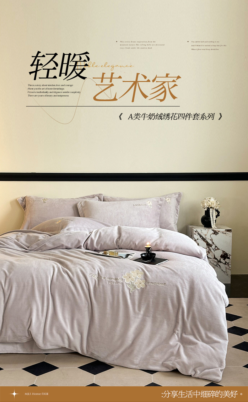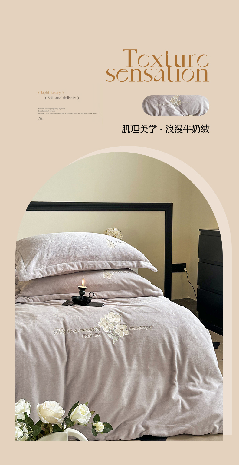 (总)泽西家纺+V17798841158发大图 2025新品秋冬加厚保暖240克奶肤绒简约风刺绣牛奶绒四件套-梵克雅宝,梵克雅宝-丁香紫,梵克雅宝-粉色,梵克雅宝-高级灰,梵克雅宝-乳白色,梵克雅宝-深卡