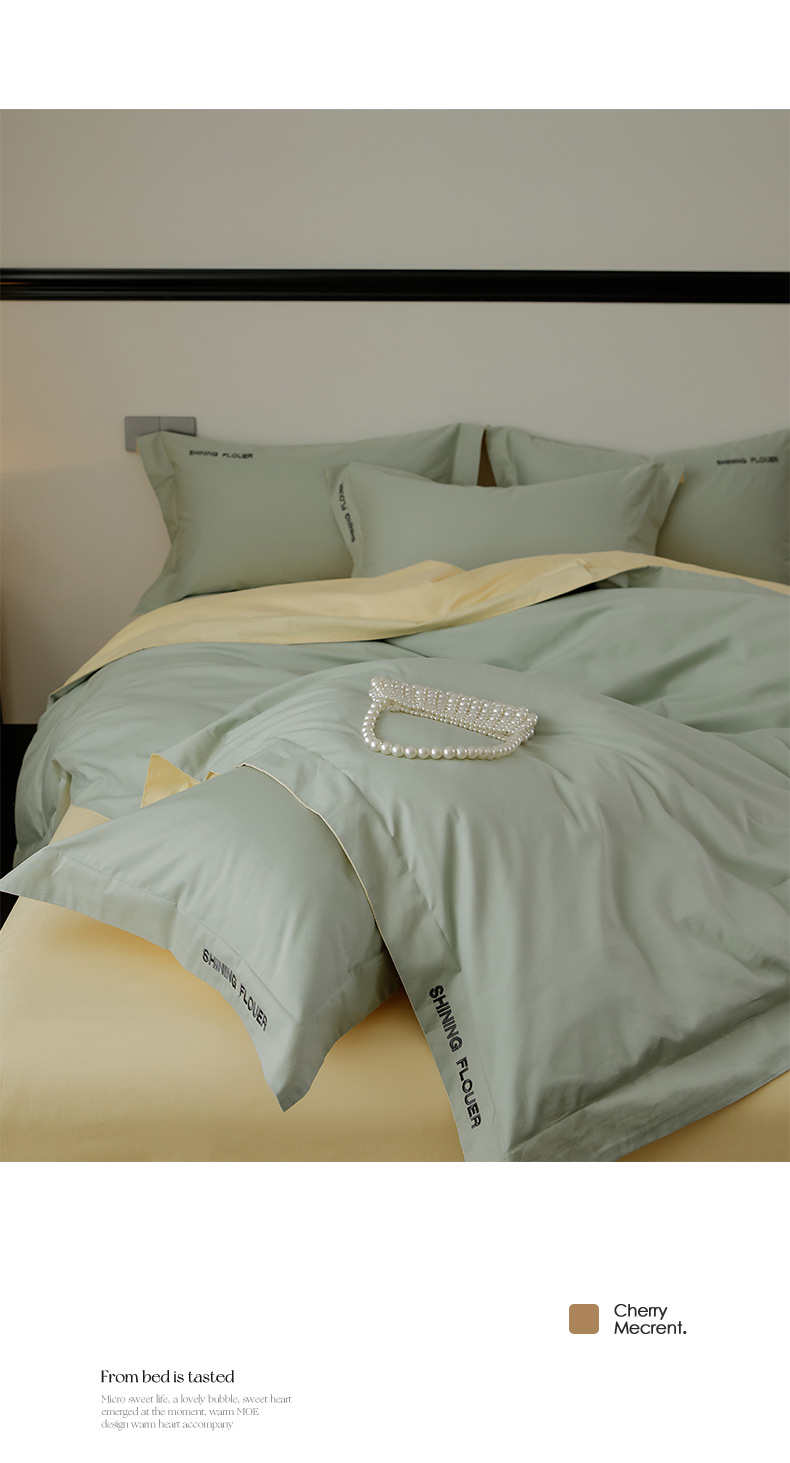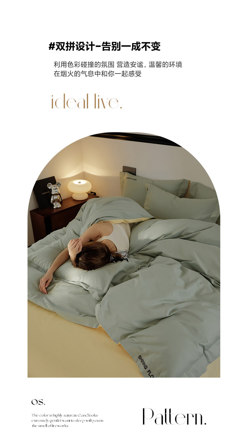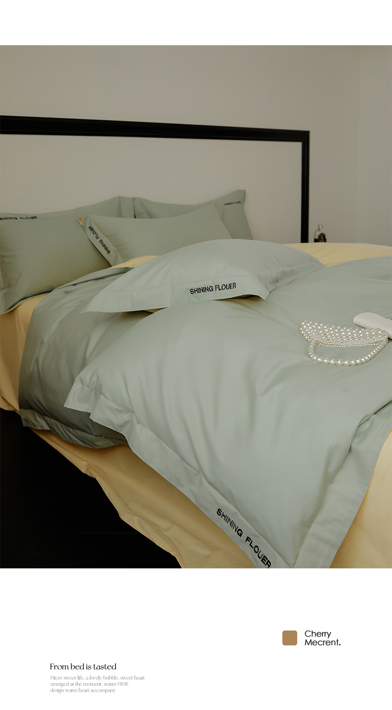 当前位置: 91家纺网 > 商品网购 > 床品套件 > 四件套 > 全棉普通四件套 > EH家居 2024新款见山系列全棉简绣双拼四件套 见山-冰洋绿