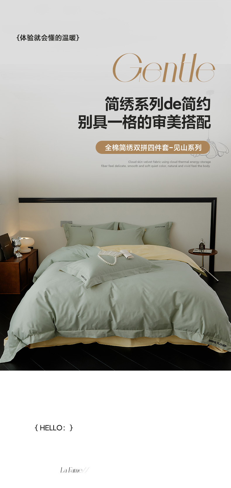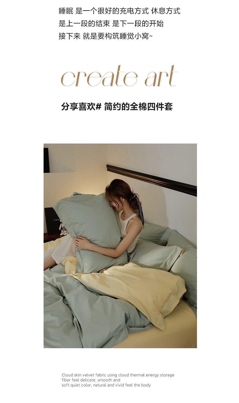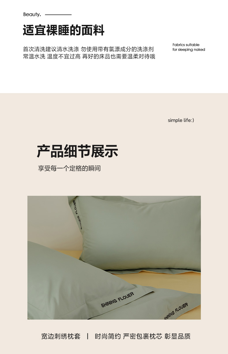 当前位置: 91家纺网 > 商品网购 > 床品套件 > 四件套 > 全棉普通四件套 > EH家居 2024新款见山系列全棉简绣双拼四件套 见山-冰洋绿