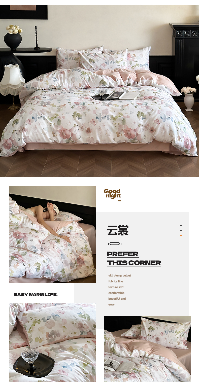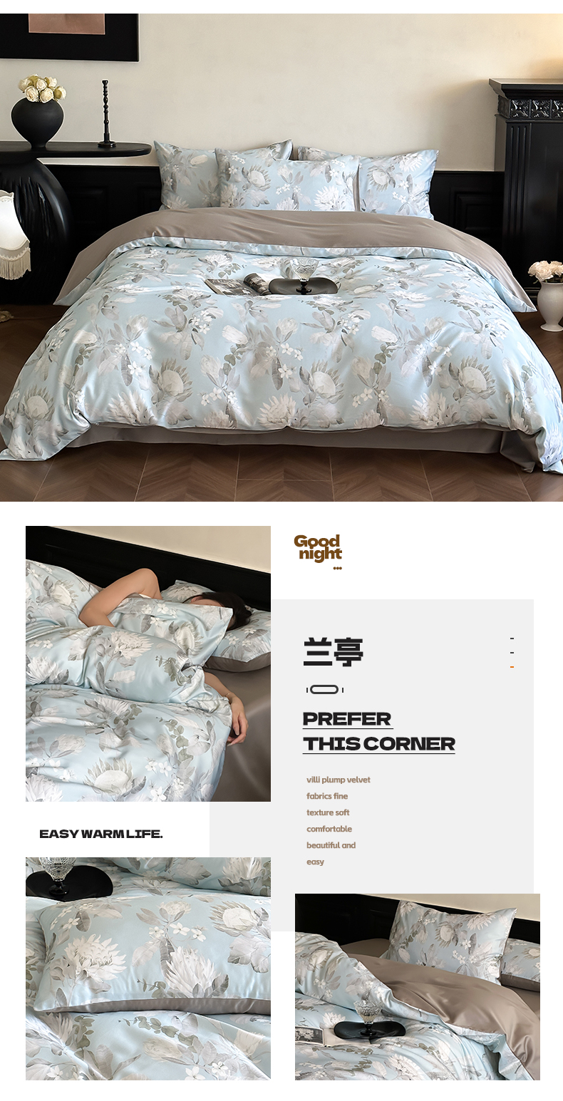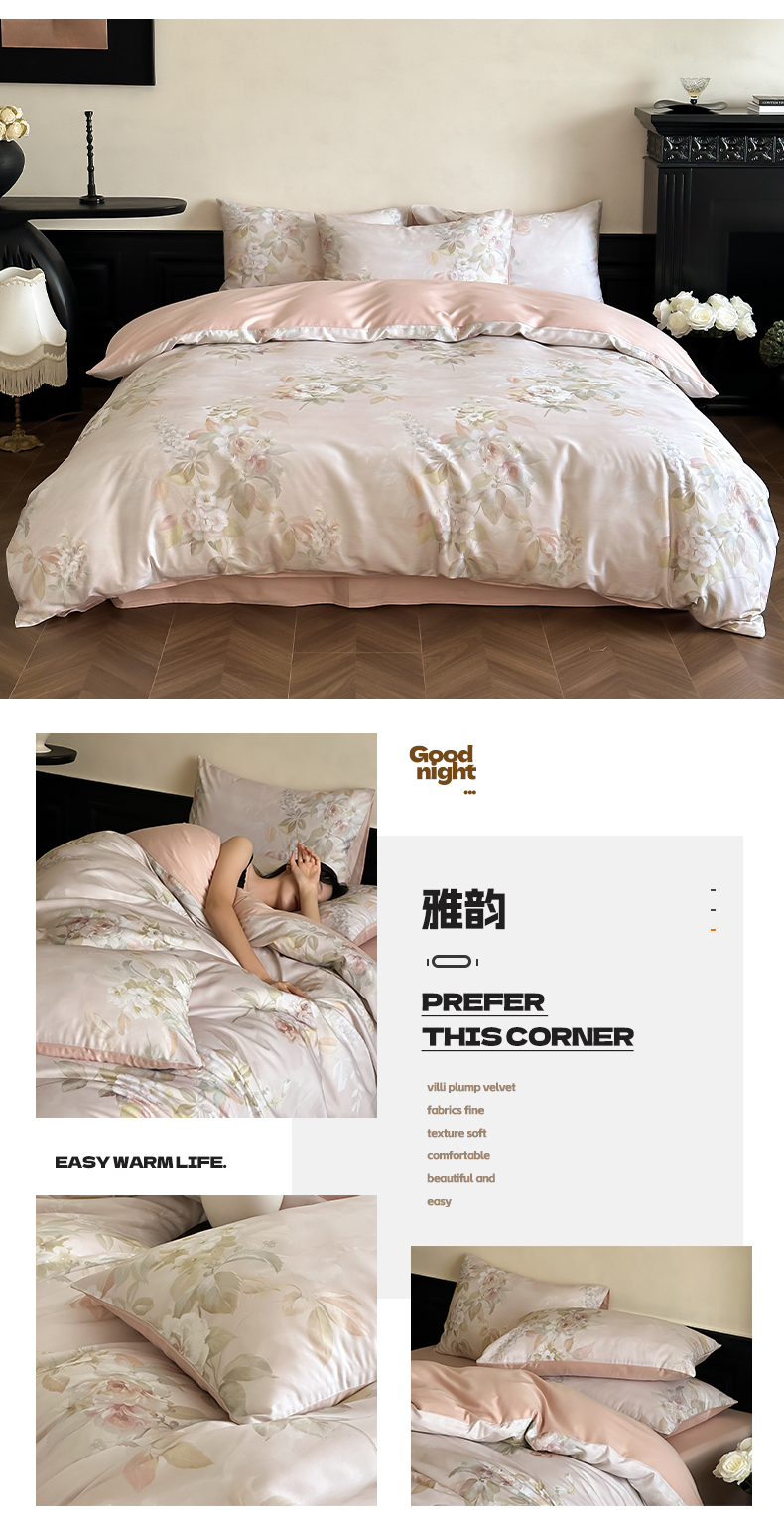 商品名称:(总)三味舒屋 2024新款云柔花艺天丝棉磨毛四件套