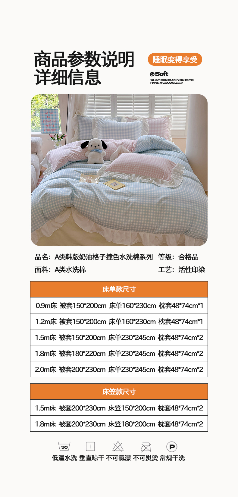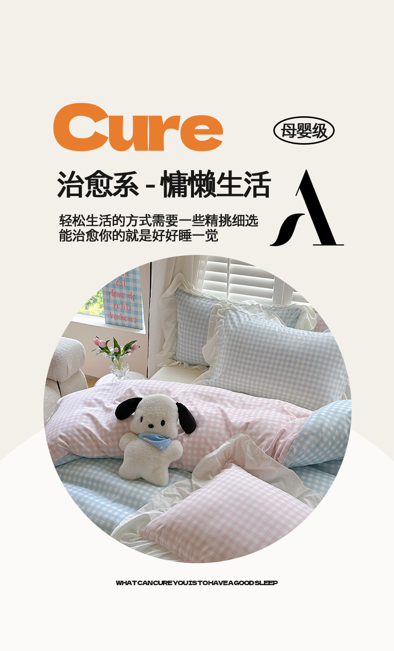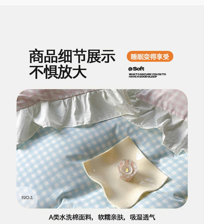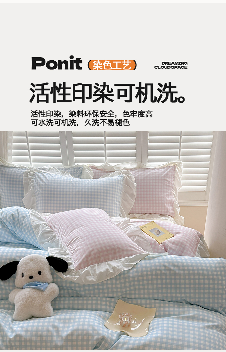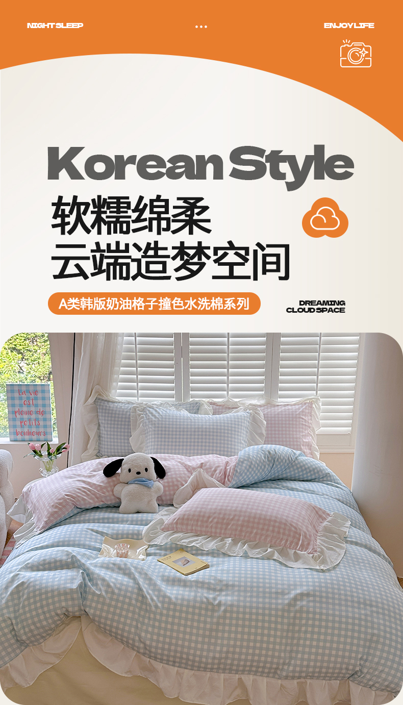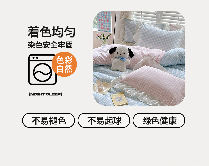 当前位置: 91家纺网 > 商品网购 > 床品套件 > 四件套 > 水洗棉四件套 > 桃心家居 2024新款A类亲肤舒适软糯云柔水洗棉化纤韩版奶油格子撞色水洗棉系列四件套 水洗棉花边-H蓝格粉格