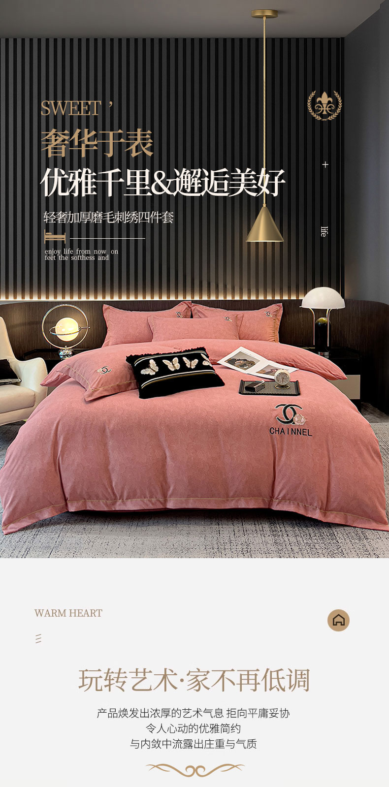当前位置: 91家纺网 > 商品网购 > 床品套件 > 四件套 > 普通磨毛四件套 > 灰鲸 2025新款秋冬加厚磨毛刺绣四件套 丽莎-樱花粉