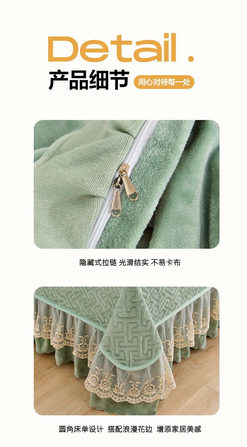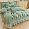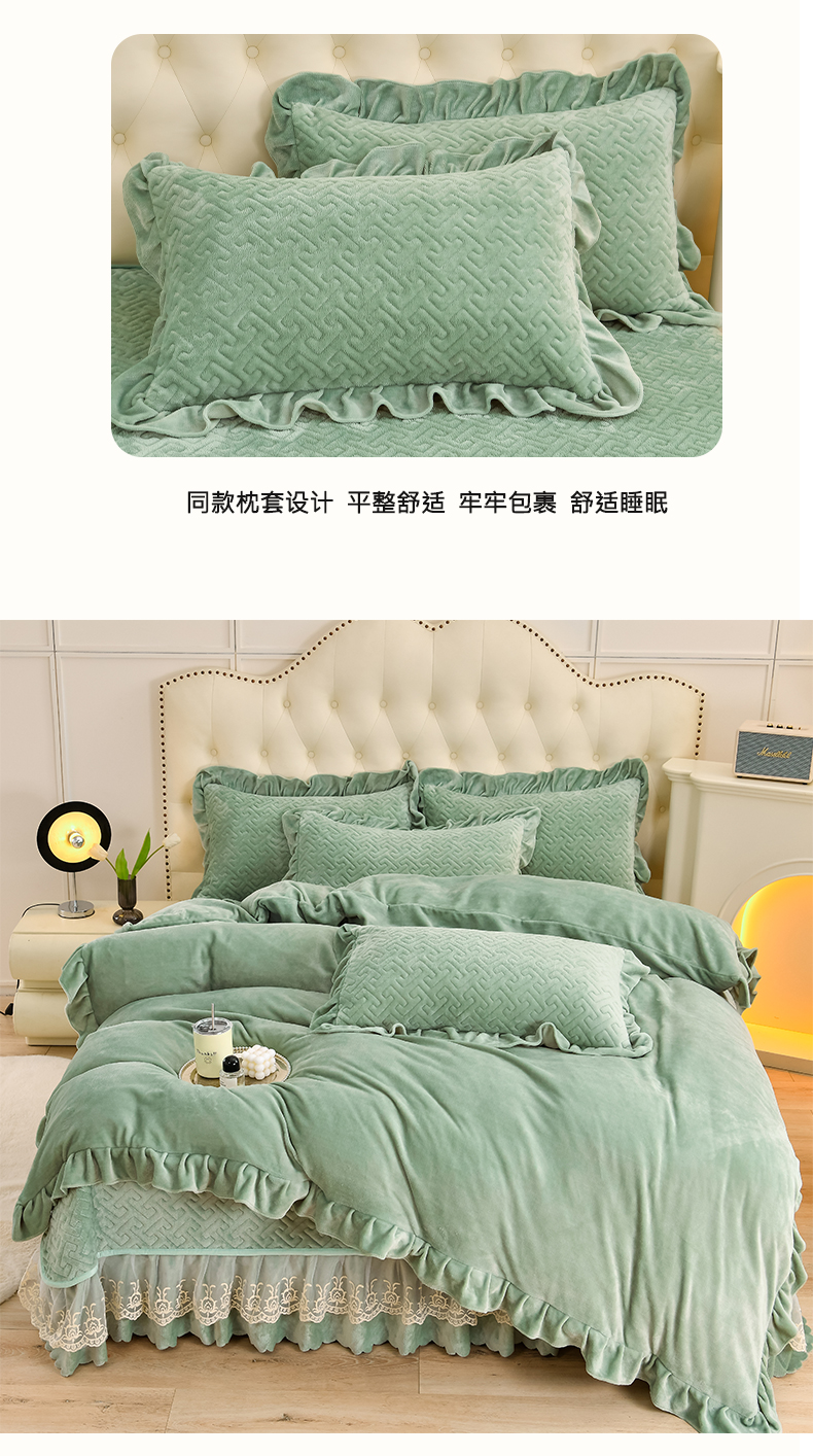 畅畅家纺 2024新款简约纯色牛奶绒夹棉床盖四件套 倾城-松石绿