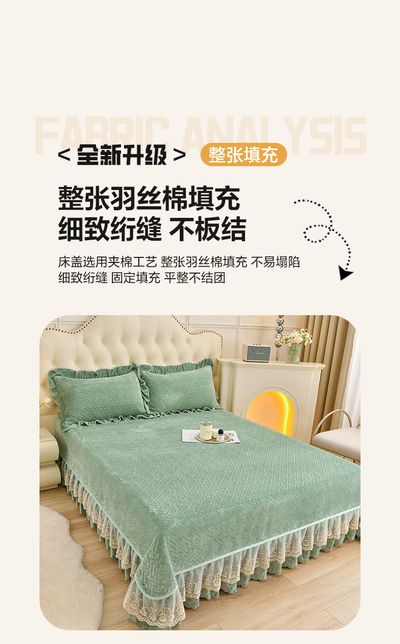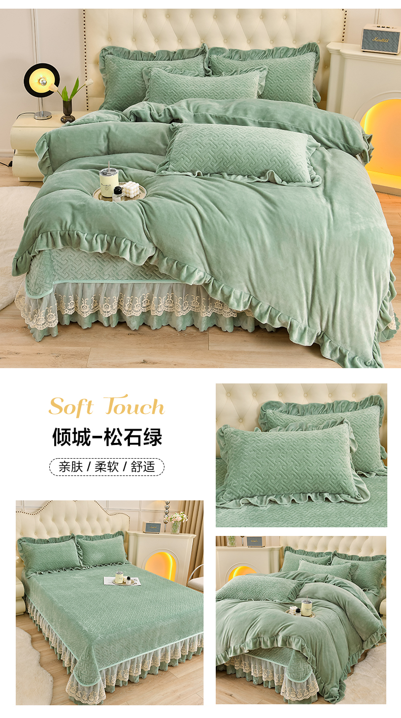 商品名称:畅畅家纺 2024新款简约纯色牛奶绒夹棉床盖四件套 倾城-松石绿