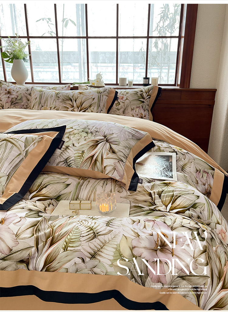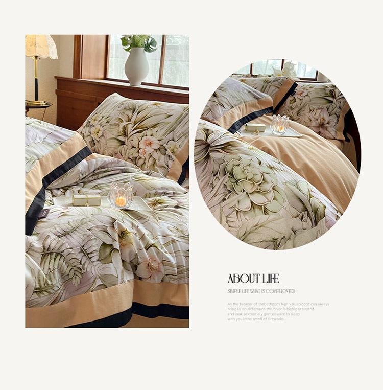 (总)乔利卡沃 2025秋冬季A类加厚全棉磨毛四件套纯棉保暖美式轻奢长绒棉数码印花高端床上用品,花弄影-黄,花弄影-蓝,花弄影-米,花弄影-紫