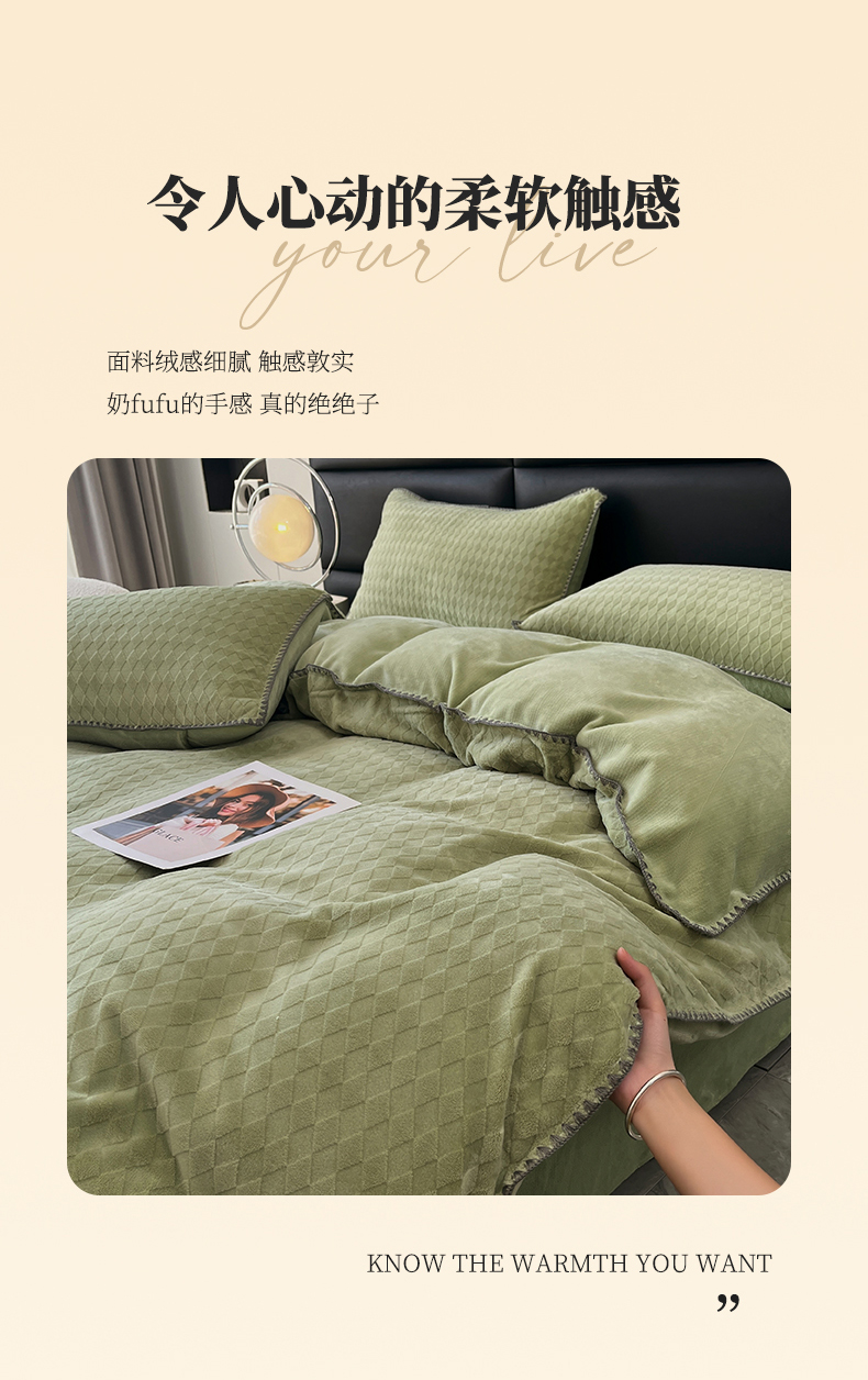 (总)菡宝 【第二批】2025雕花绒牛奶绒四件套-行云流水-支持定做定制尺寸,行云流水-豆绿,行云流水-豆紫,行云流水-米杏