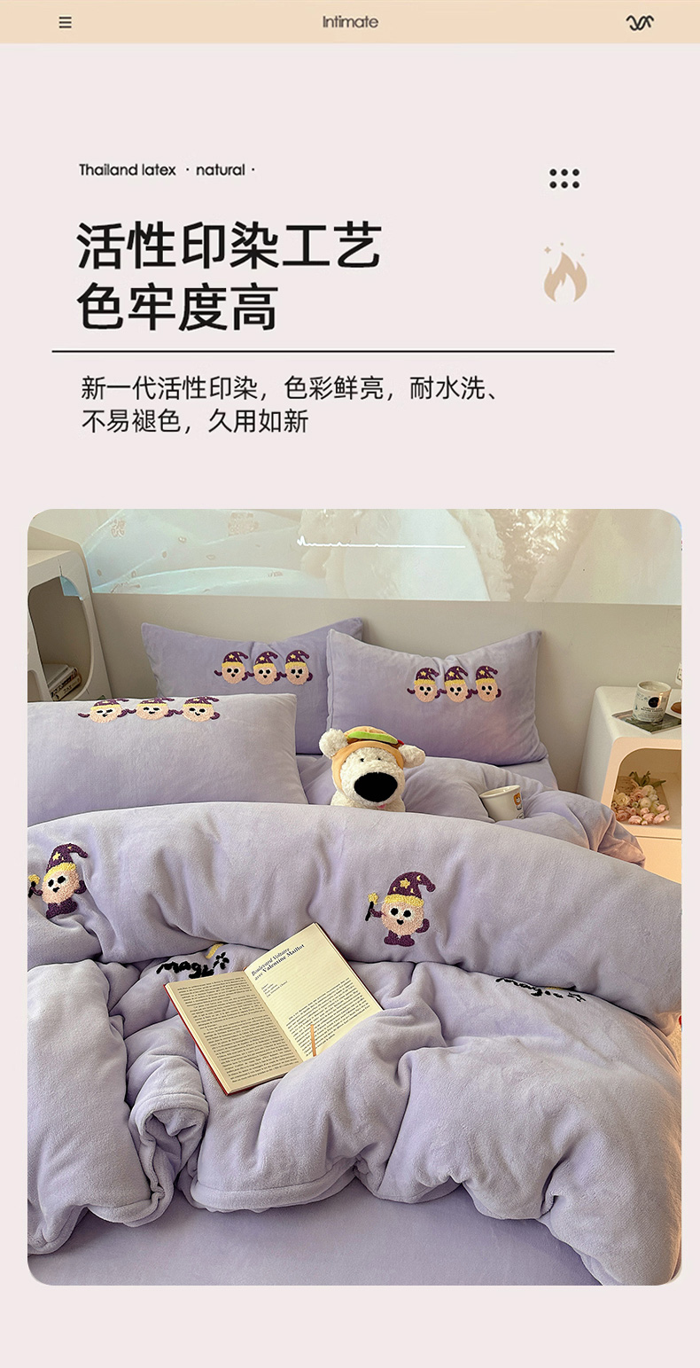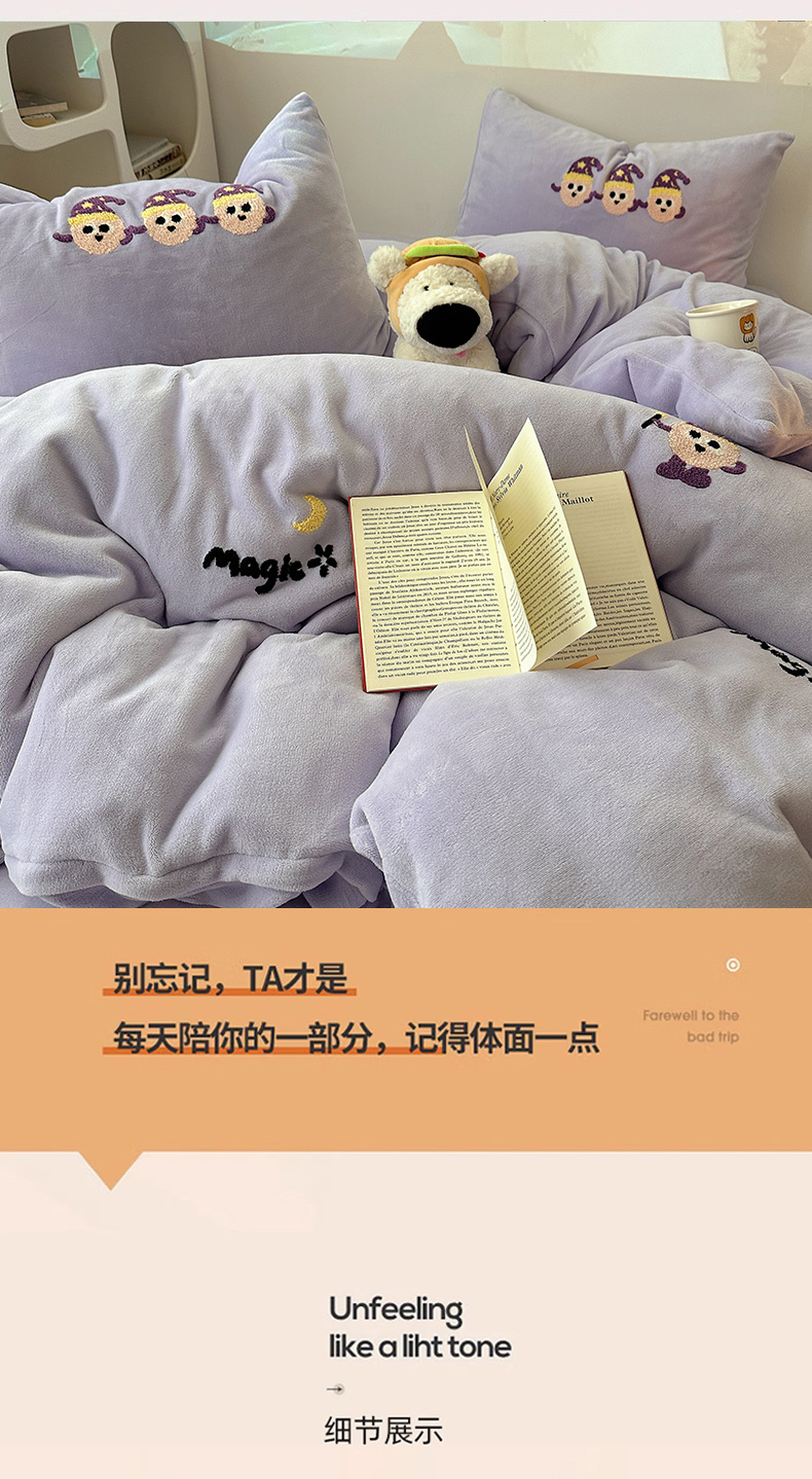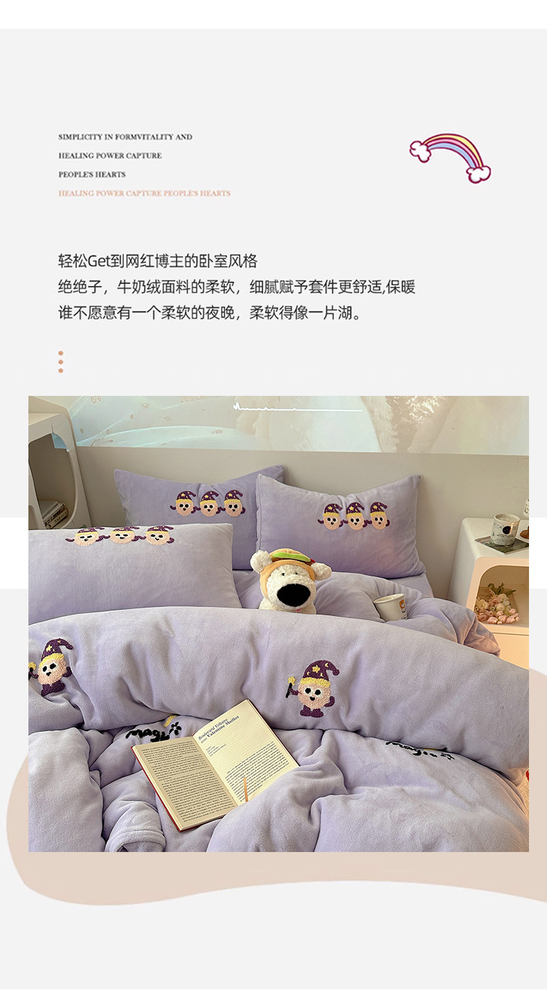 (总)红嘴企鹅 2025新款精致贴布绣牛奶绒四件套,棒棒糖-粉,Bunny兔-粉,Bunny兔-蓝,Bunny兔-紫,Cute狗-粉,Cute狗-蓝,Cute狗-紫