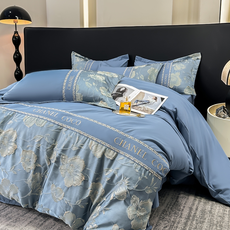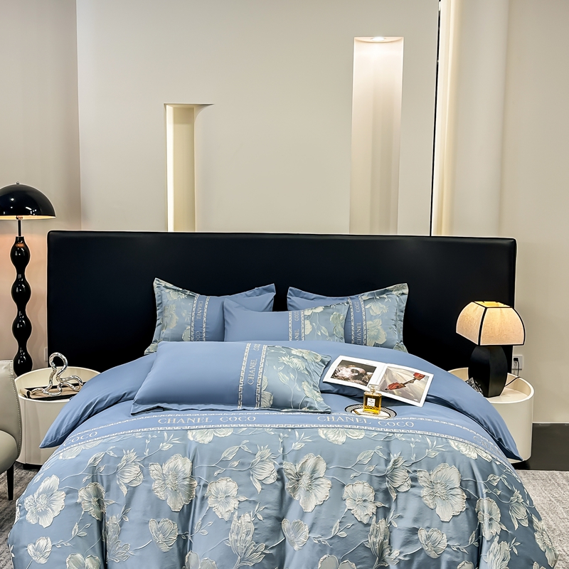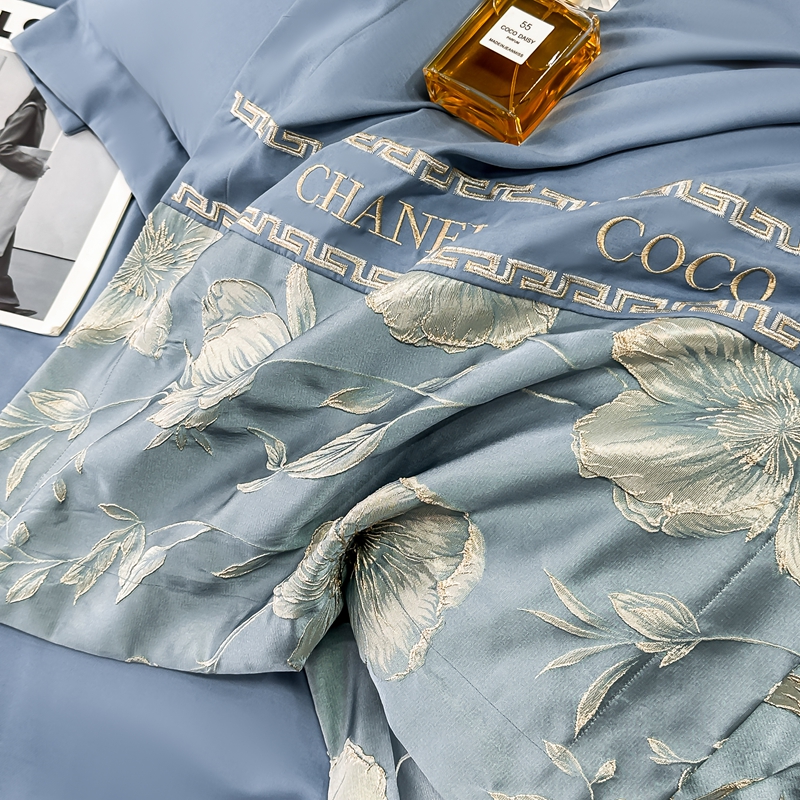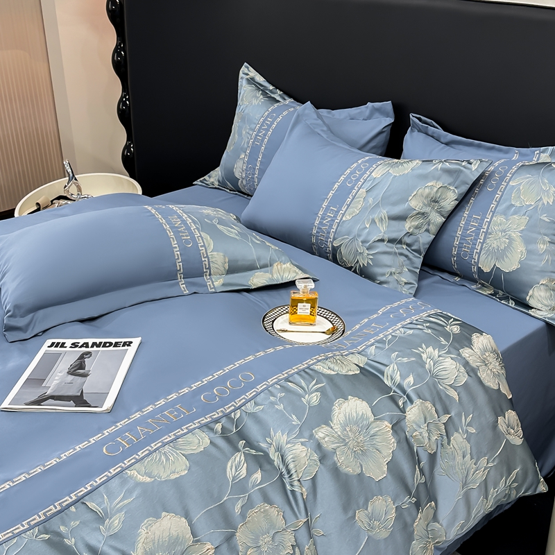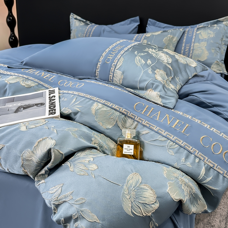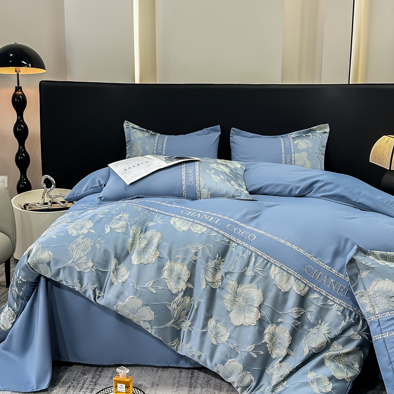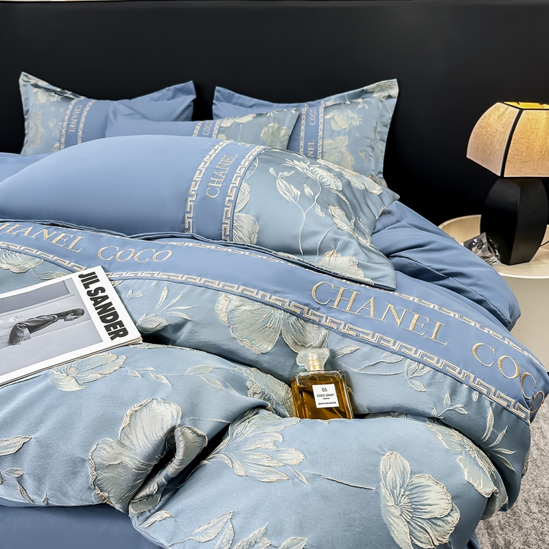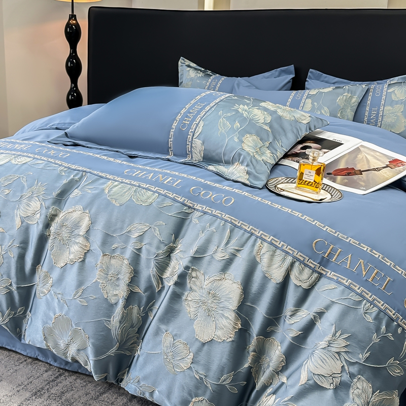 (总)宅家居 2023新款 设计款轻奢高精密贡缎提花臻品真丝四件套,迪奥-宾利蓝,迪奥-银灰,山茶花-粉玉,山茶花-蓝灰,山茶花-浅紫,香乃乃-米白