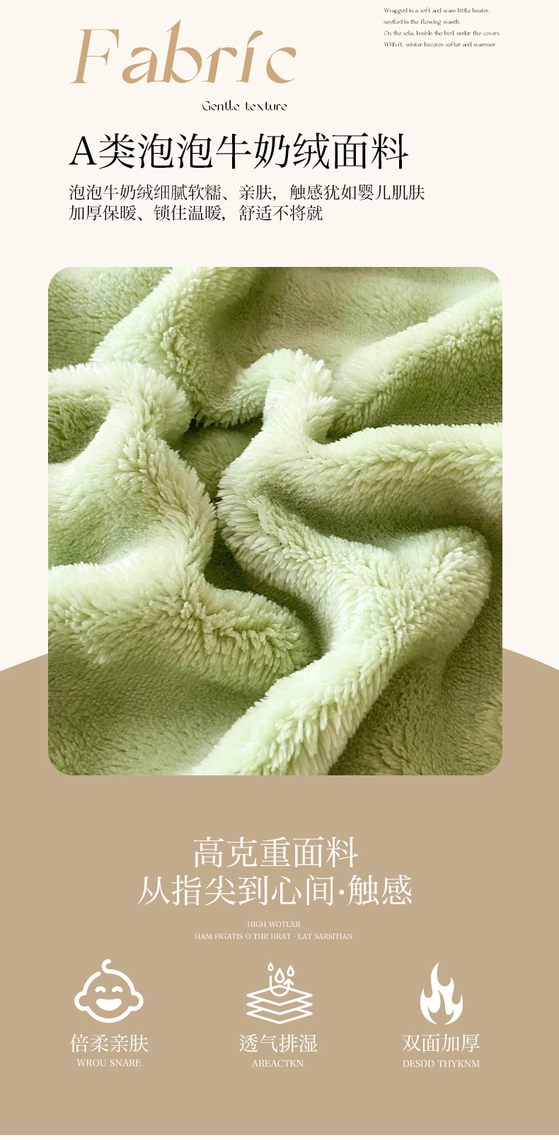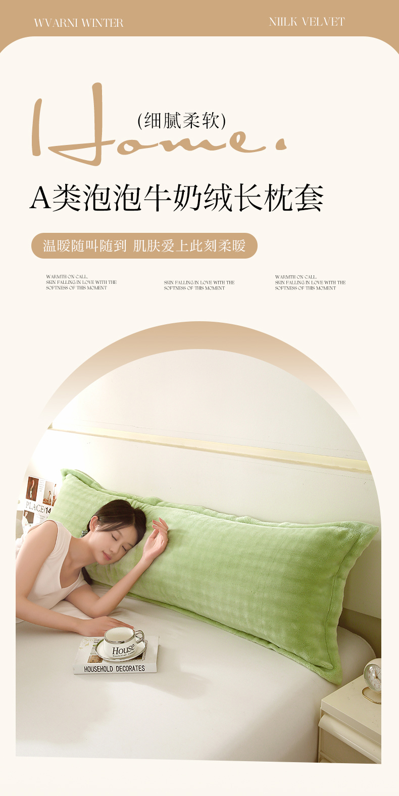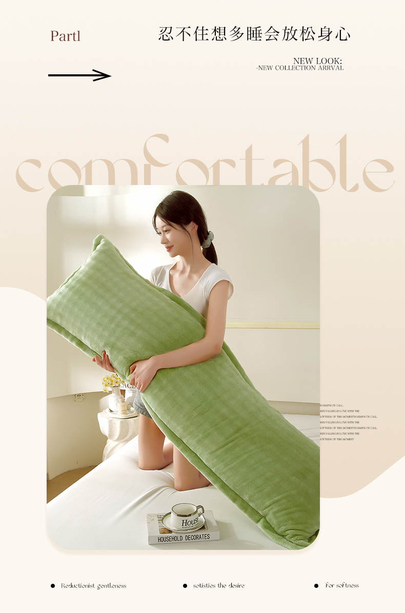 商品名称:芯宜佳 2024新款高克重泡泡牛奶绒长枕套 橄榄绿