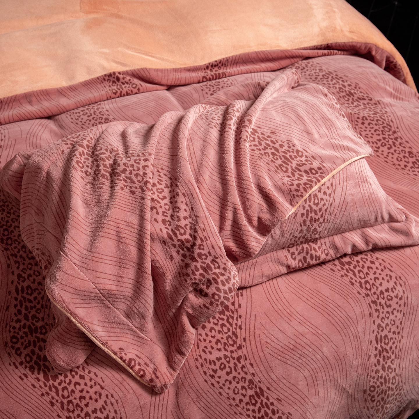 商品名称:新方向 2025新款高克重240克全消光A类印花牛奶绒四件套-有风 有风-豆沙玉