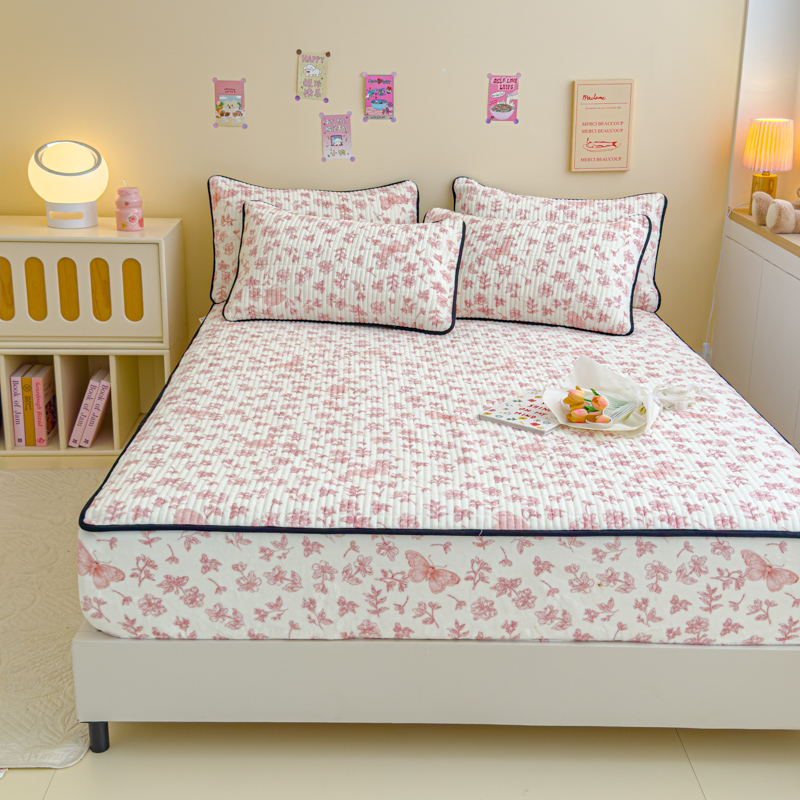 商品名称:金丝鸟 2024新款牛奶绒夹棉床笠 飞花粉 夹棉床笠