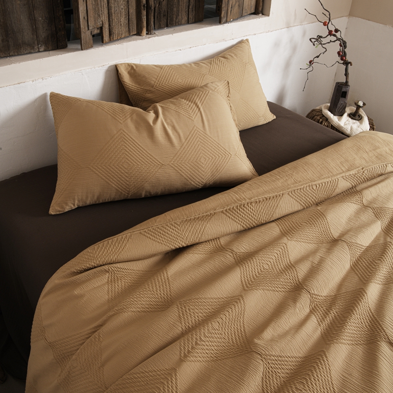 (总)简家居 2025新款亲肤舒适棉麻床盖三件套,棉麻提花