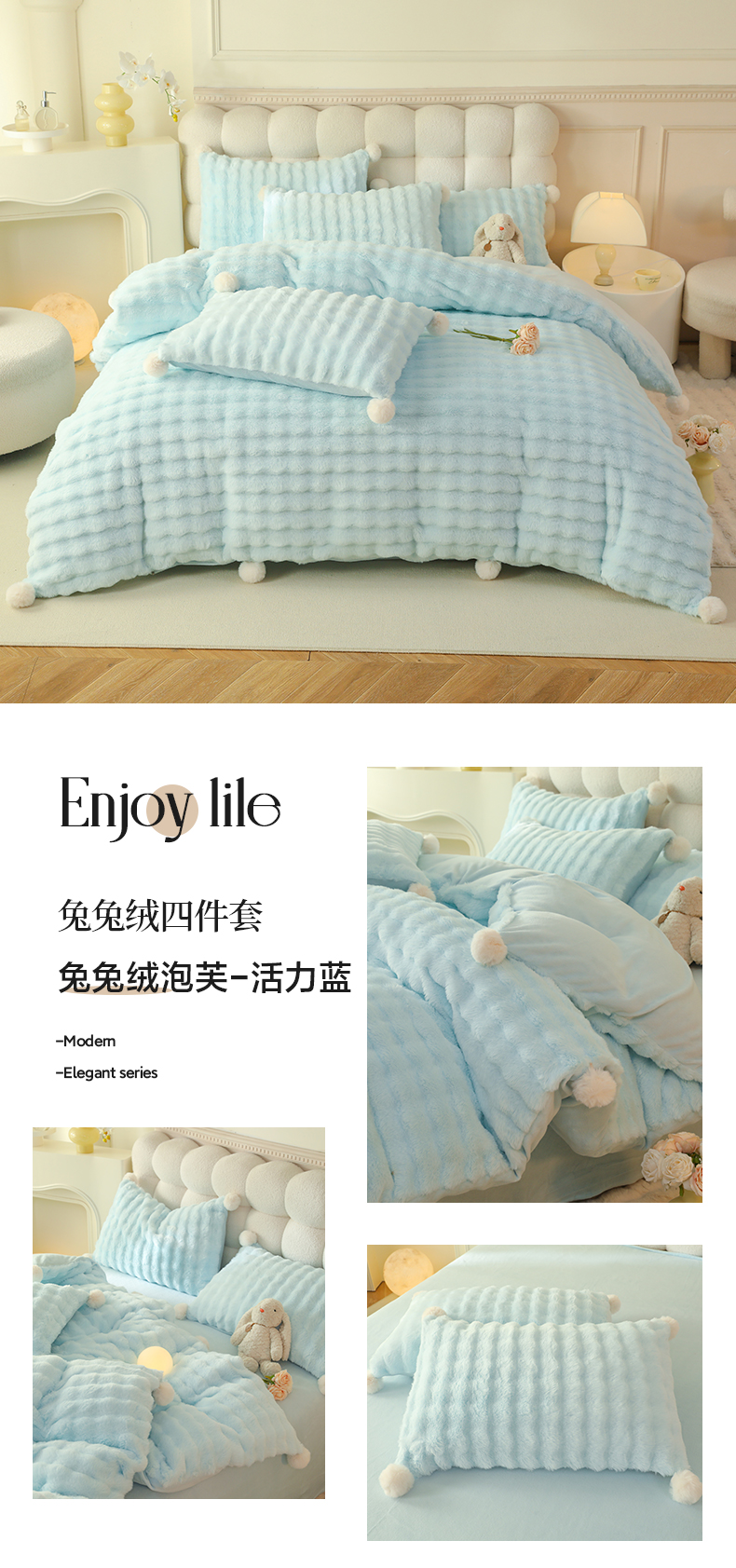 当前位置: 91家纺网 > 商品网购 > 床品套件 > 四件套 > 兔毛绒四件套 > 逸尚阁 2024新款兔兔绒纯色泡泡毛球四件套 兔兔绒泡芙-活力蓝