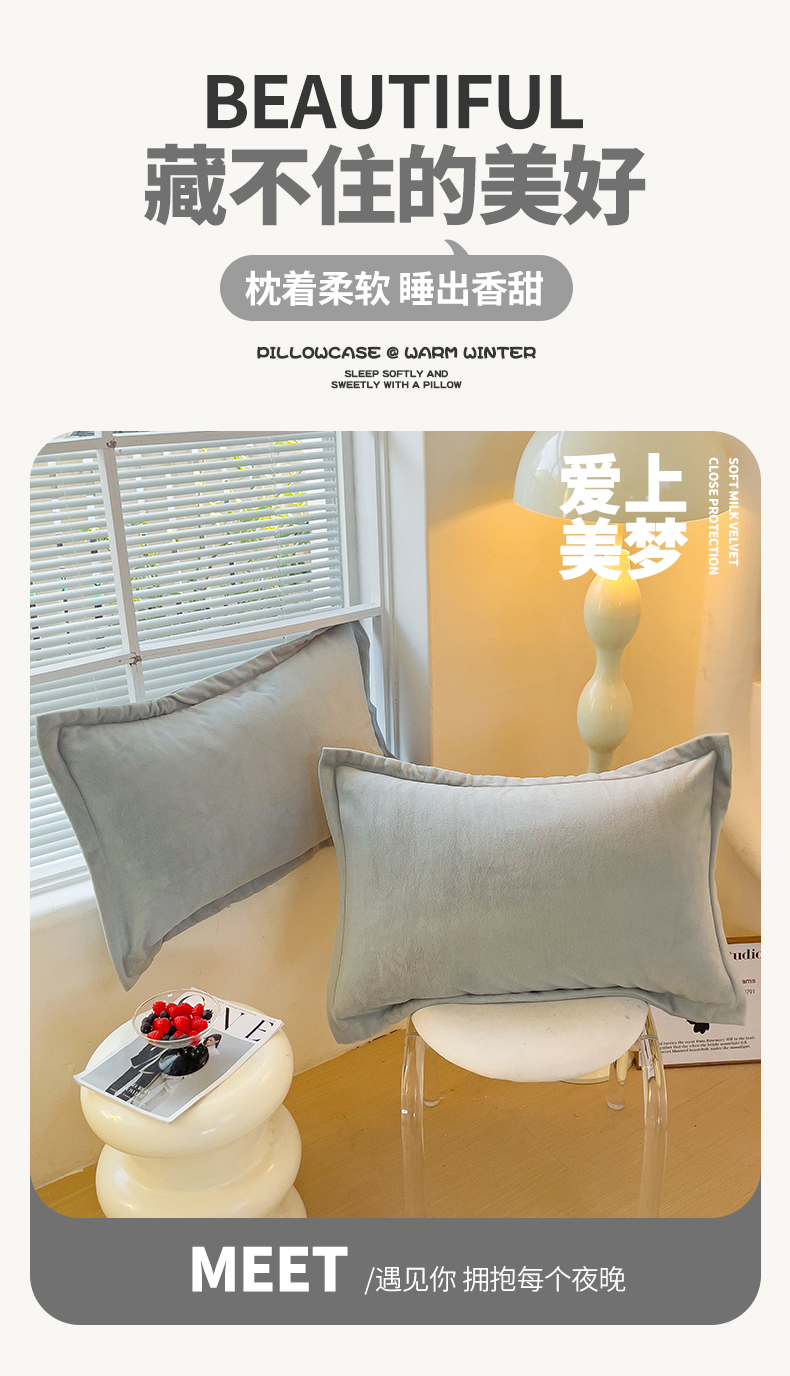 恬澳家纺 2025新款暖阳牛奶绒枕套 暖阳-浅灰