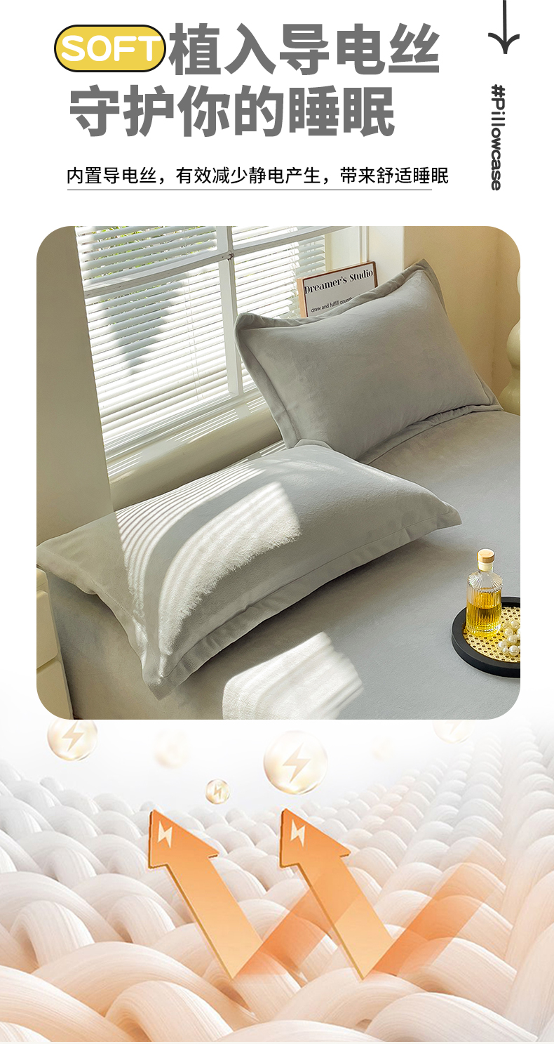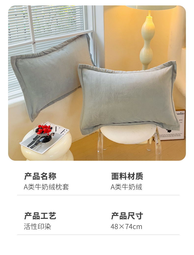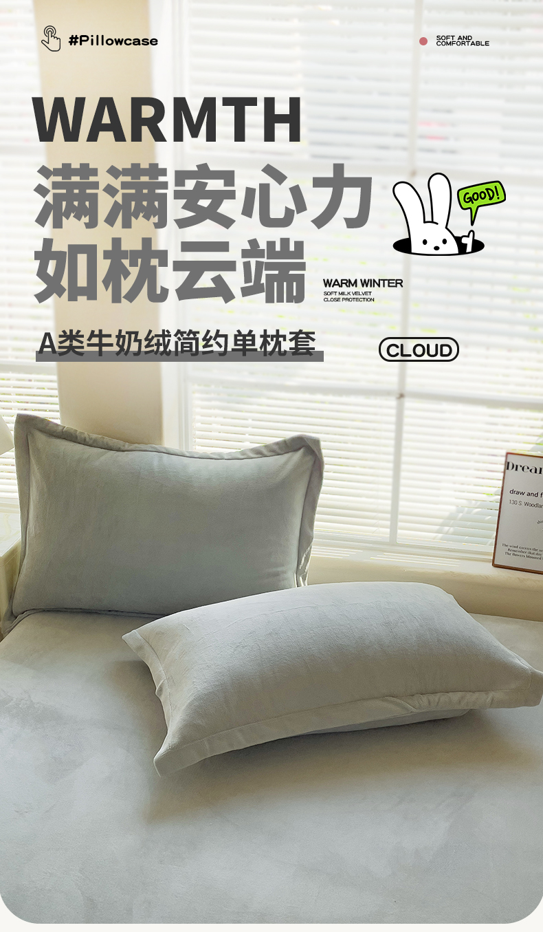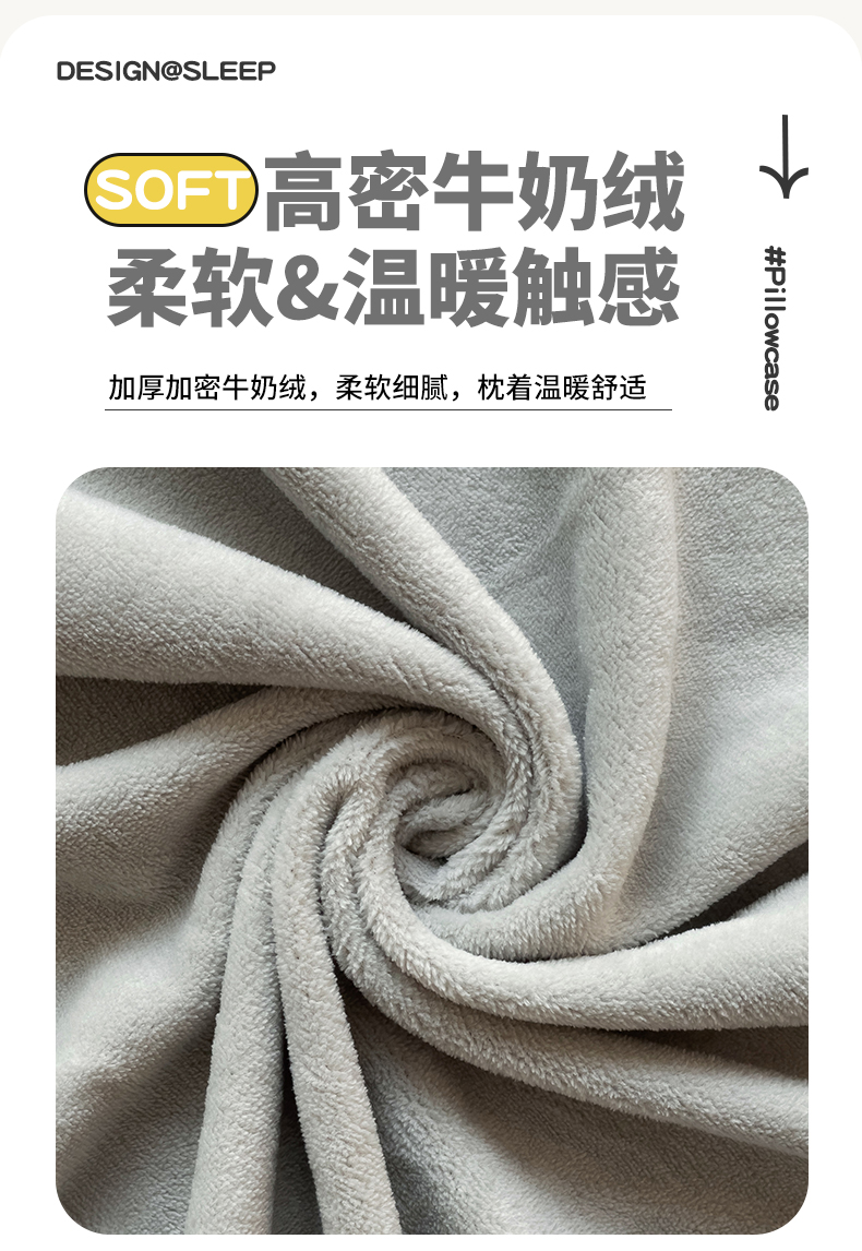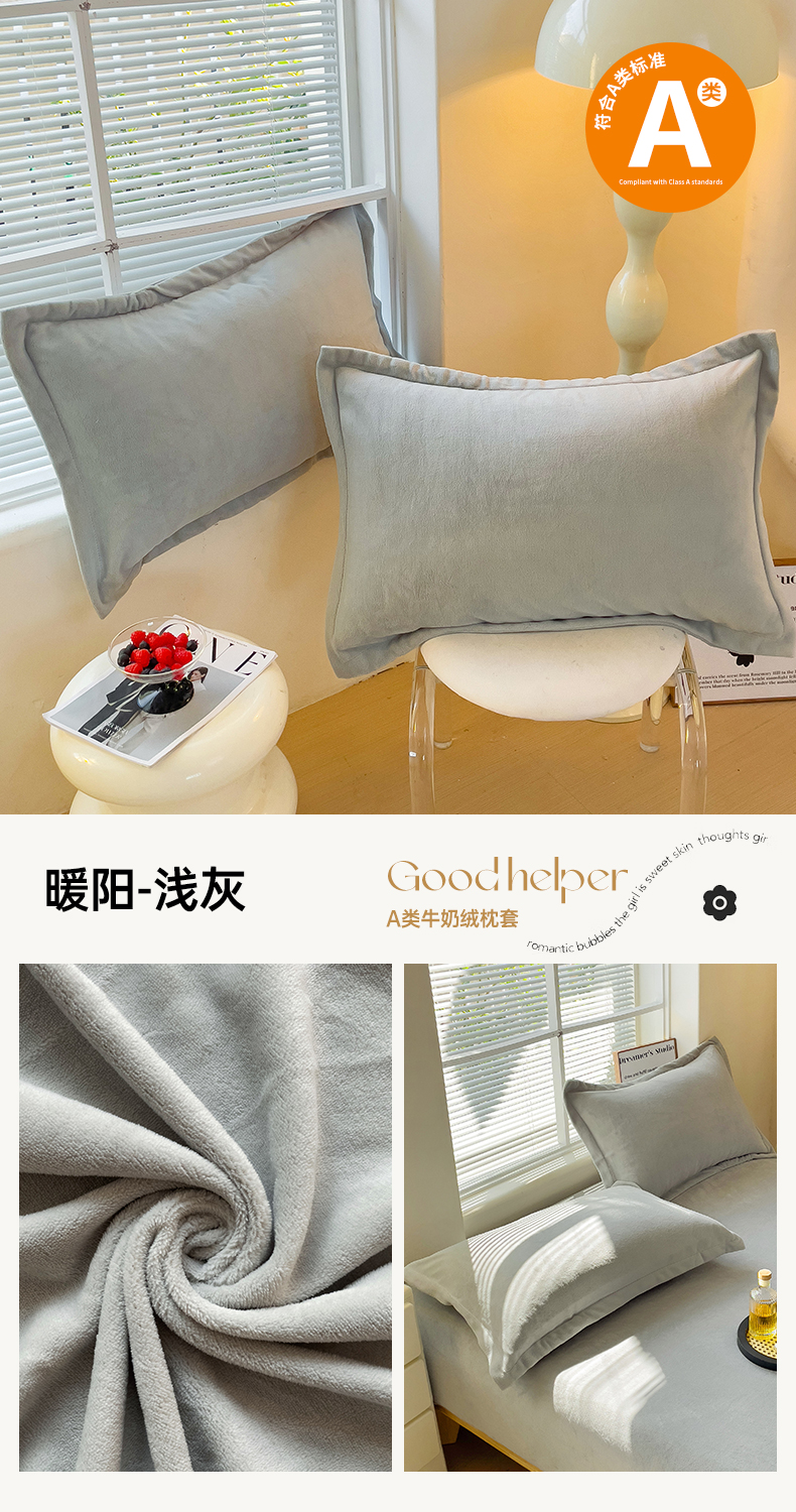 商品名称:恬澳家纺 2025新款暖阳牛奶绒枕套 暖阳-浅灰