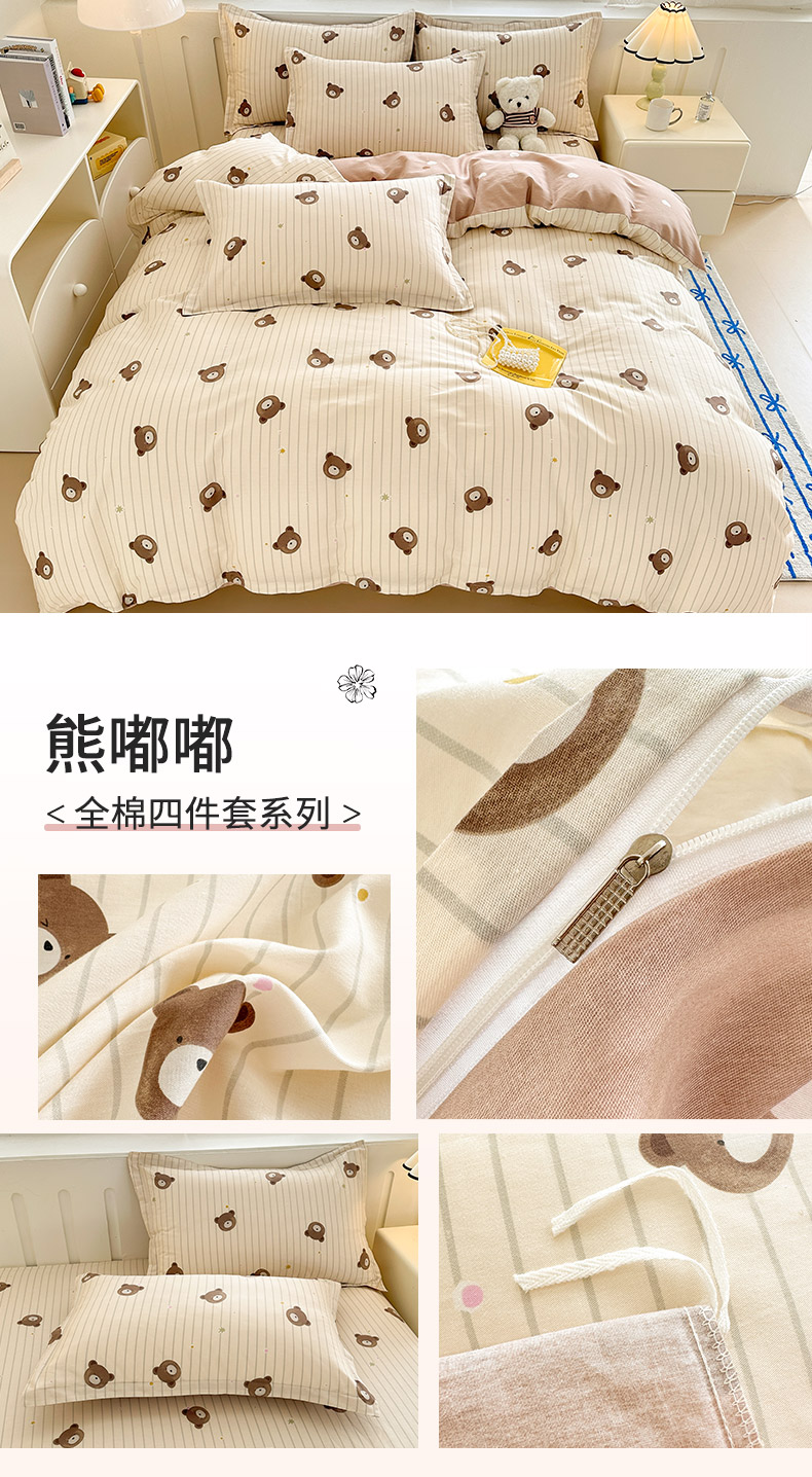 商品名称:绵庭家纺 2025新款全棉印花四件套系列 熊嘟嘟