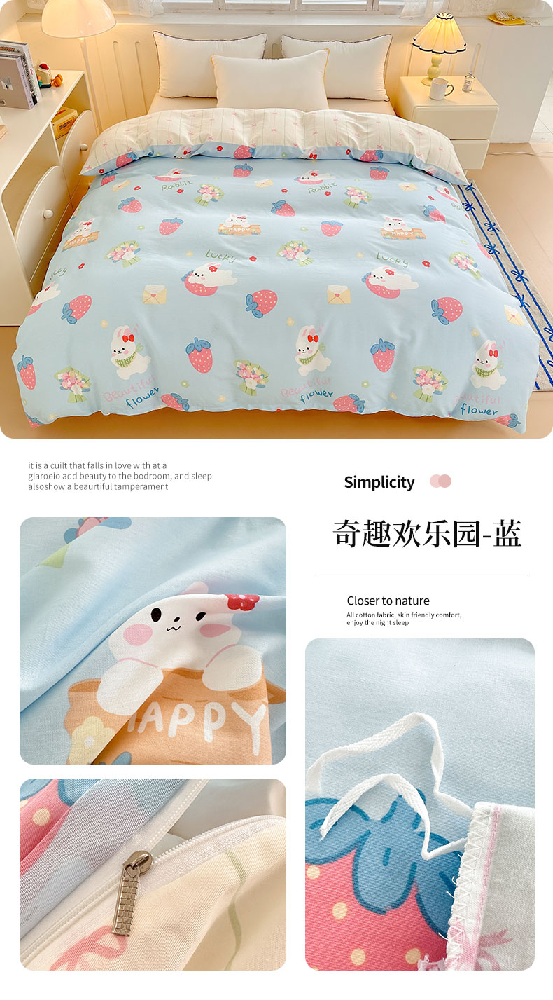 商品名称:绵庭家纺 2025新款全棉印花单被套系列 奇趣欢乐园-蓝