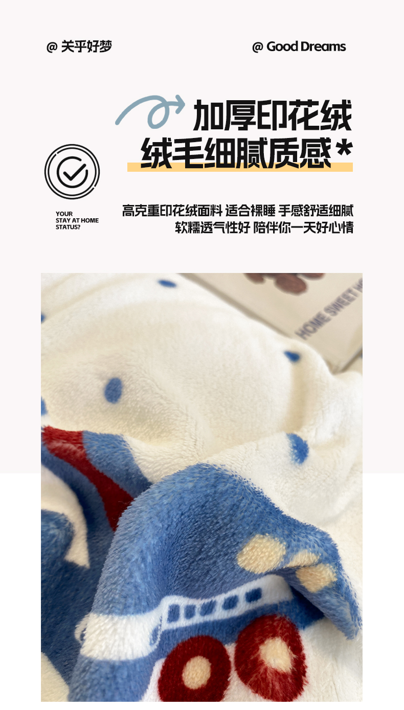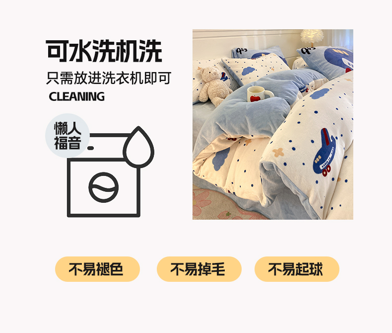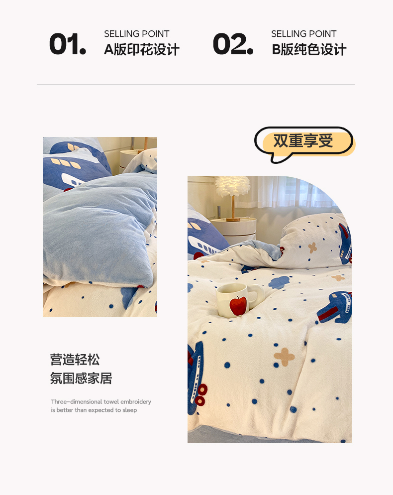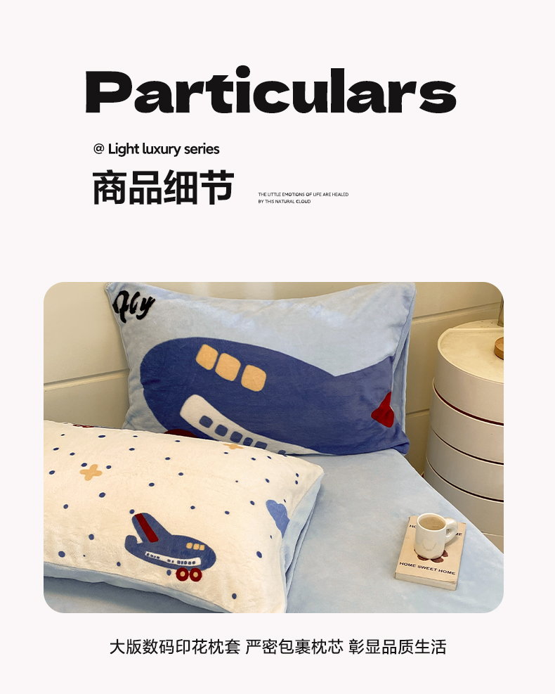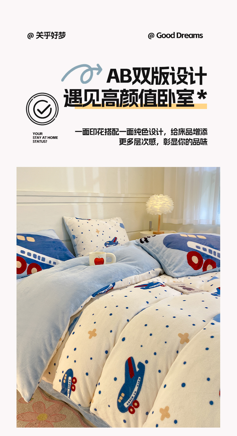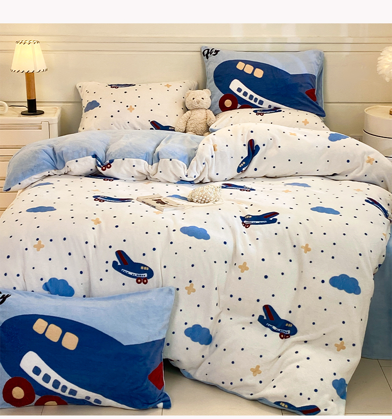 商品名称:如一 2024新款A类高克重印花牛奶绒四件套 蓝飞机