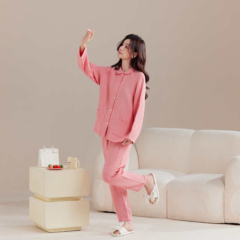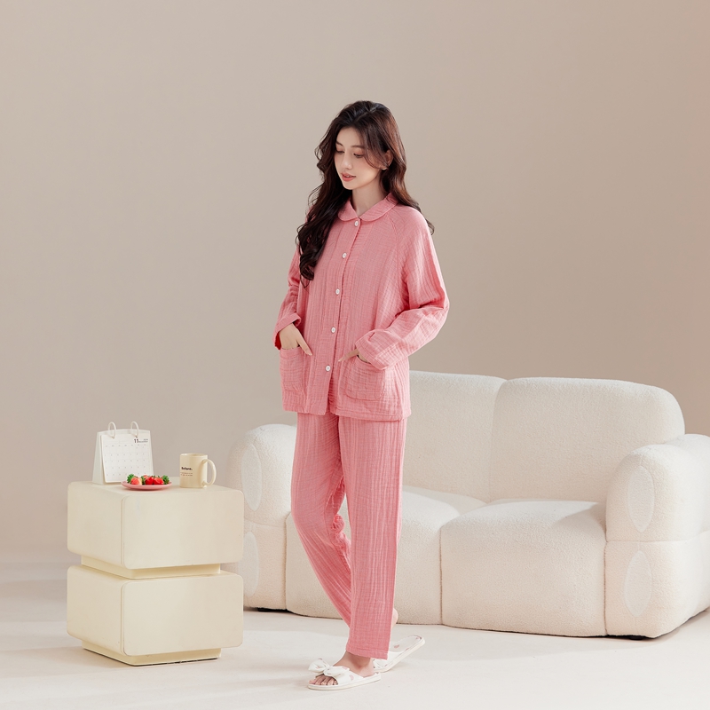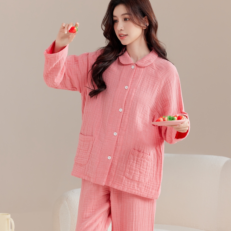 玖弘家居 2025新款家居服系列-四层纱【控价 抖音118 视频号 99 小红书 118 】 深粉细格女