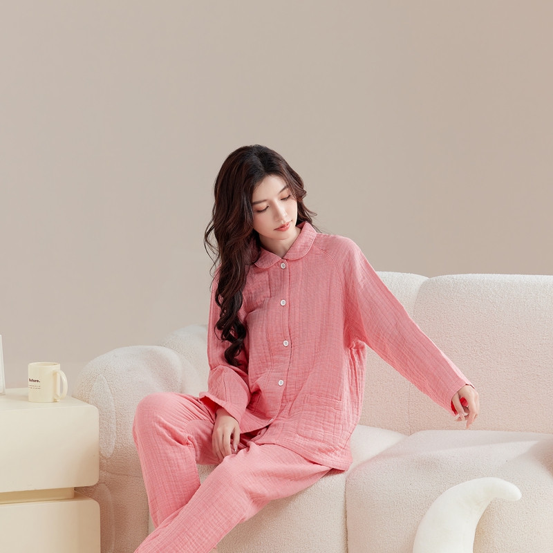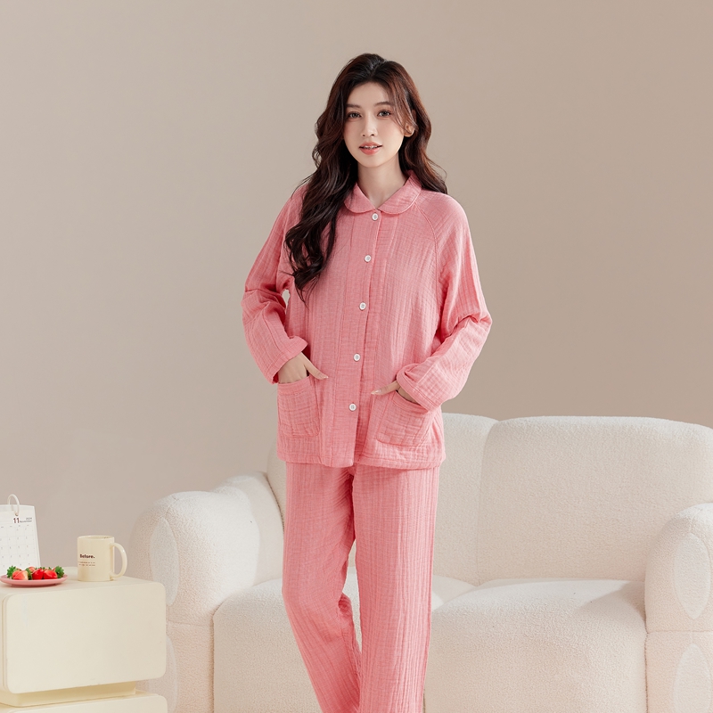 (总)玖弘家居 2025新款家居服系列-纯色系列【控价 抖音69.9 视频号 89.9 小红书 89.9】,纯色粉长袖女款,纯色紫长袖女款