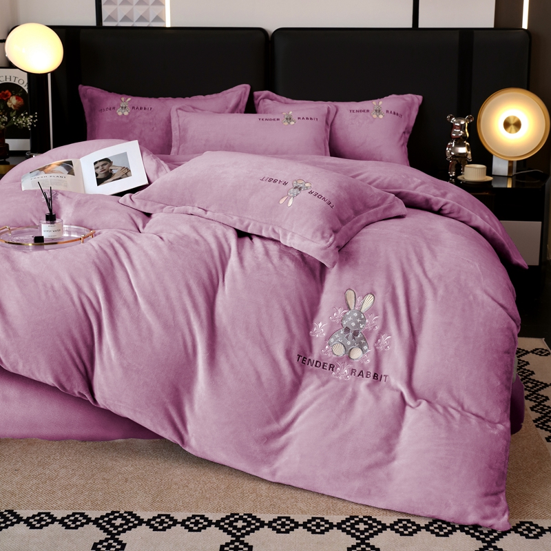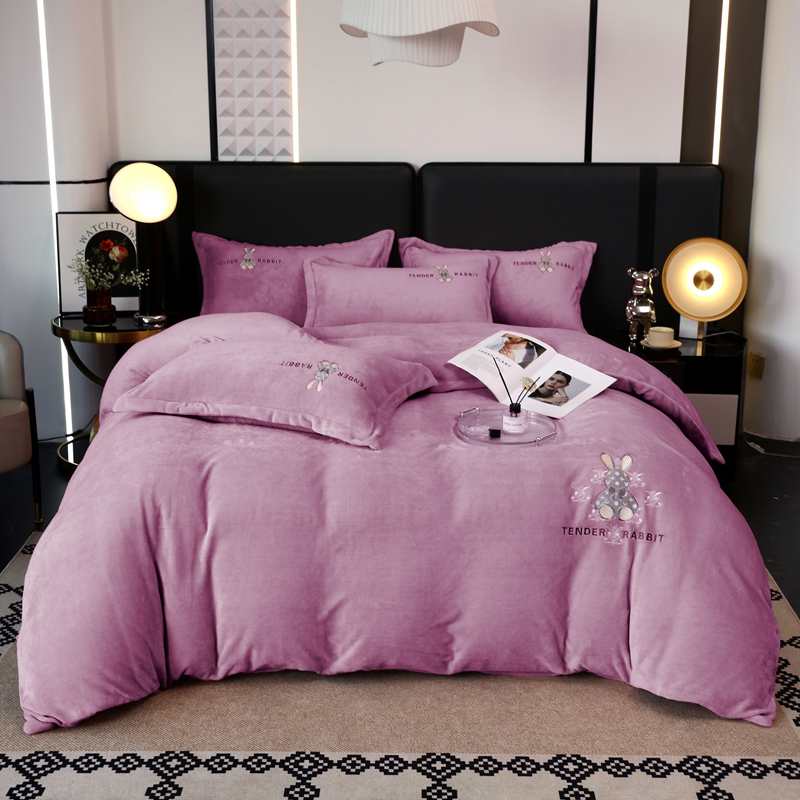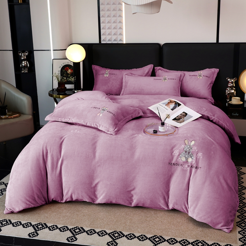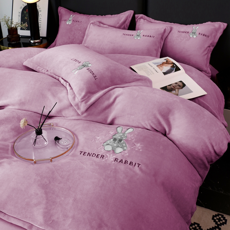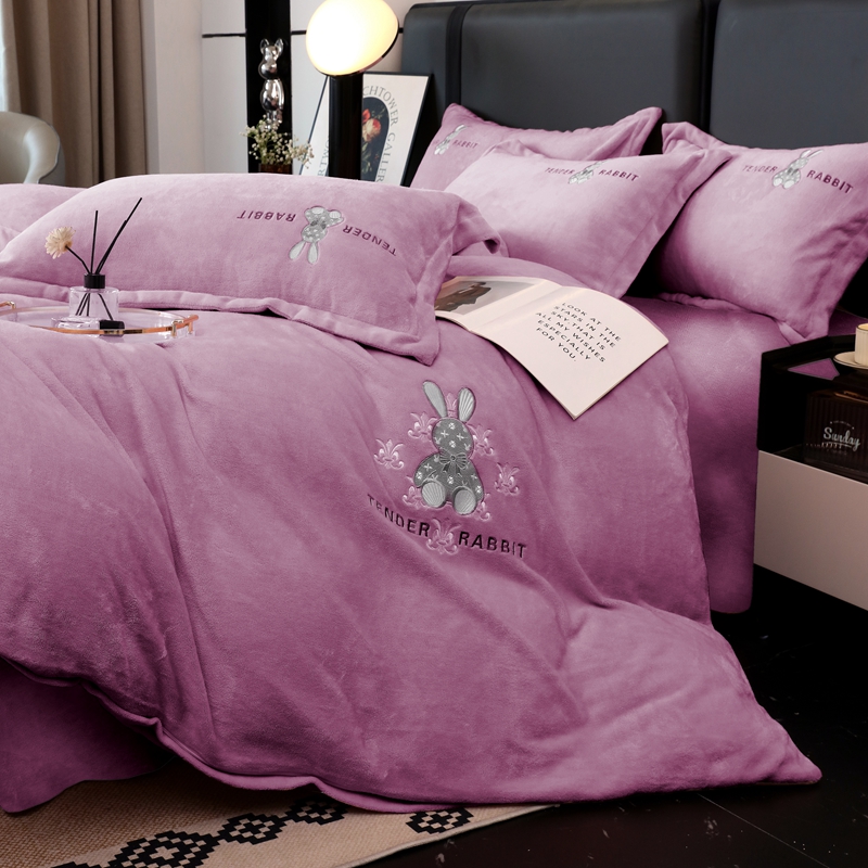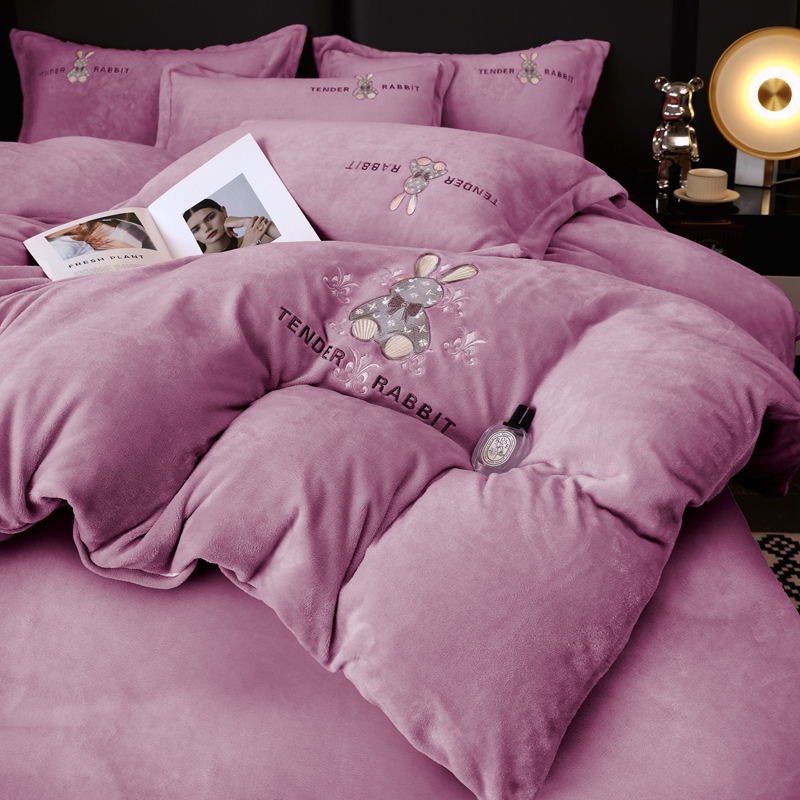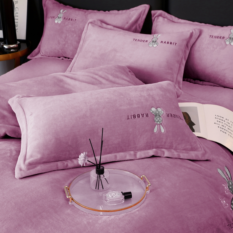 玖玖爱家纺 2024新款加厚加密绣花牛奶绒床单四件套 紫