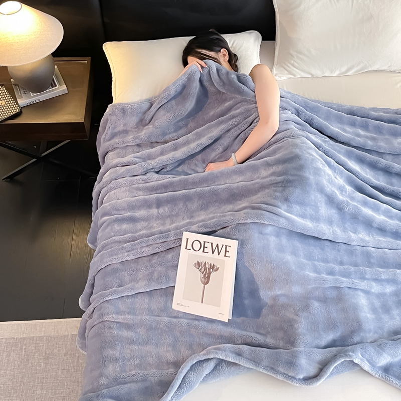 一帆毯业 (总)跨境外贸2025新款仿兔毛宽抽条牛奶绒盖毯,抽条白色,抽条粉,抽条卡其,抽条浅灰,抽条深灰,粉,绿色,紫色,果绿,黑色
