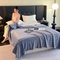 一帆毯业 2024新款全棉纯色刺绣麻绳滚边四件套 宾利蓝奶茶,宾利蓝奶茶