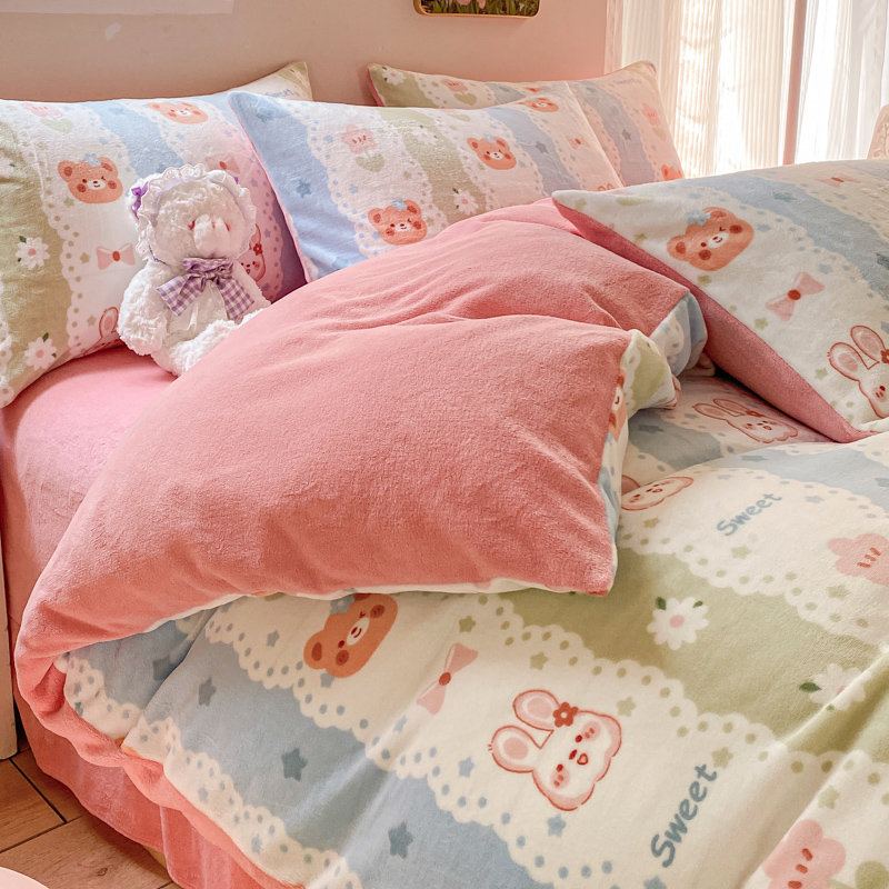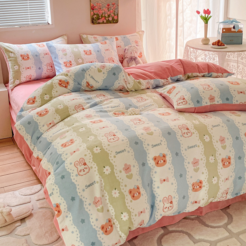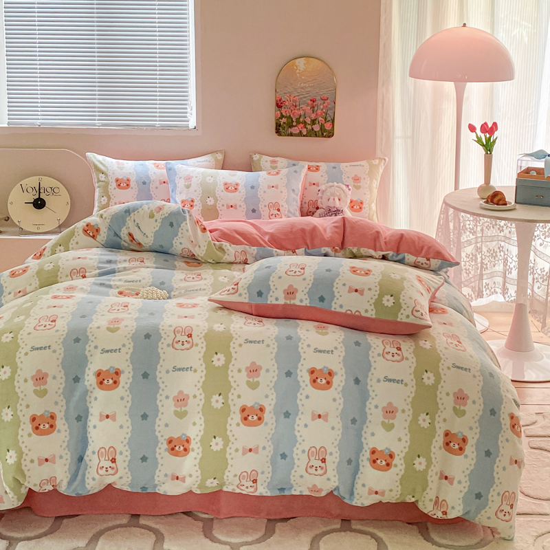 (总)斯卡诺家纺 2025小清新加厚高克重牛奶绒四件套网红直播爆款,樱桃,北欧兔,贝拉,兰心小鸭,萌萌兔,趣味草莓,爱心花朵,爱心灰,爱心熊粉,彩虹,黑白荷花,花边动物,快乐小熊,萝卜,绿野仙踪,魅影,萌萌狗,迷你小熊,牡丹花,泥点子母,气球小象,水果,蝴蝶结,咖爱心,恐龙世界,花妖