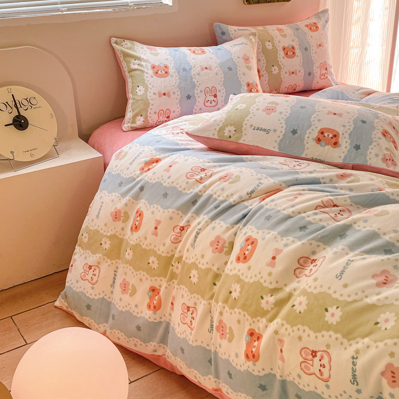 商品名称:斯卡诺家纺 2025新款小清新双面牛奶绒印花四件套 动物乐园