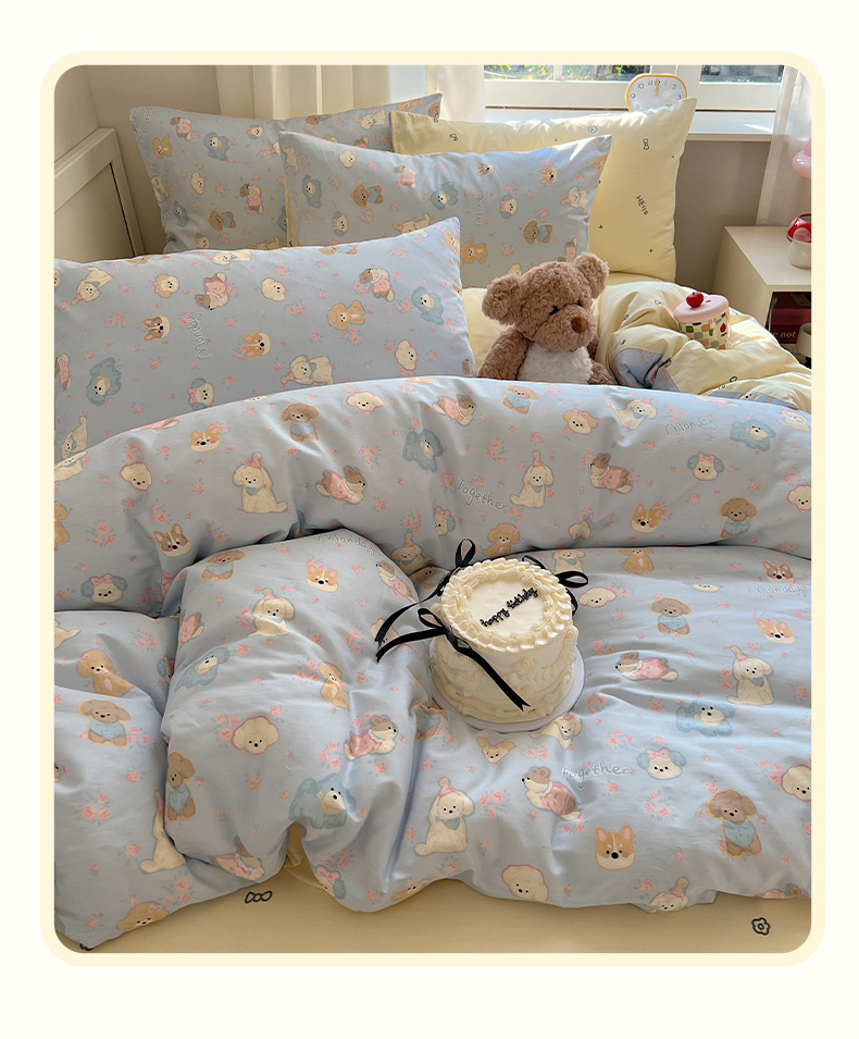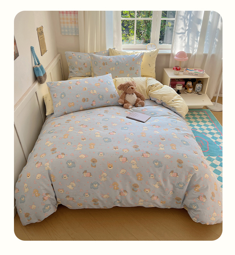 瑞莱 (持续上新)2024冬季新款13372全棉印花四件套-卡通系列 狗狗家族(蓝)