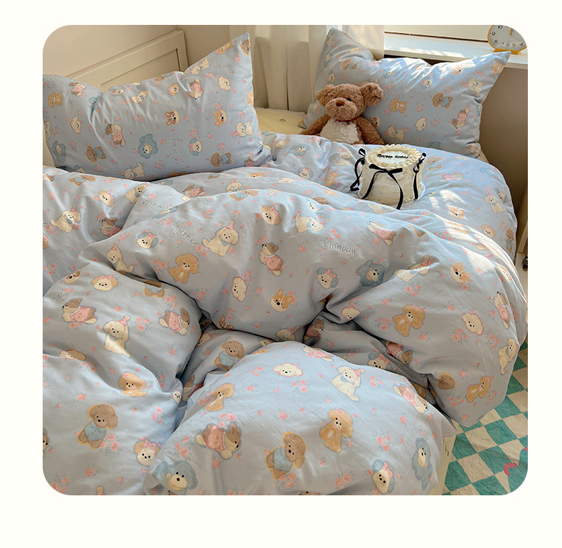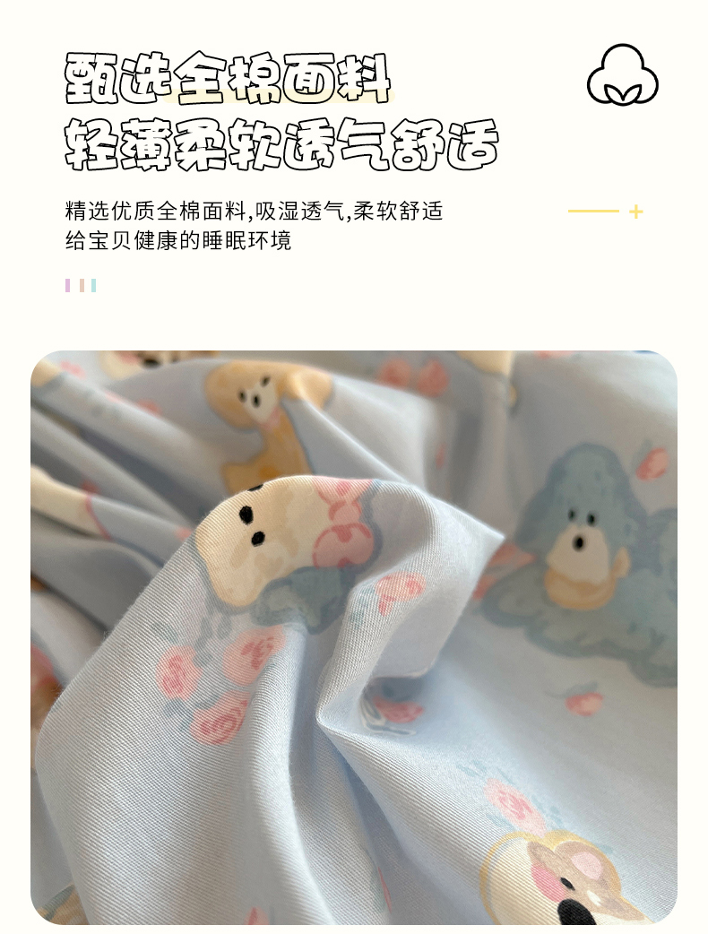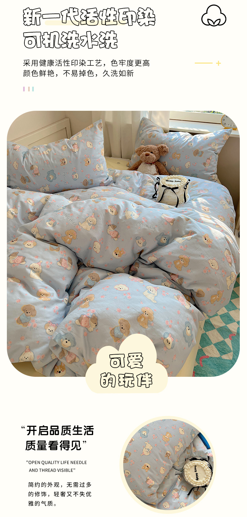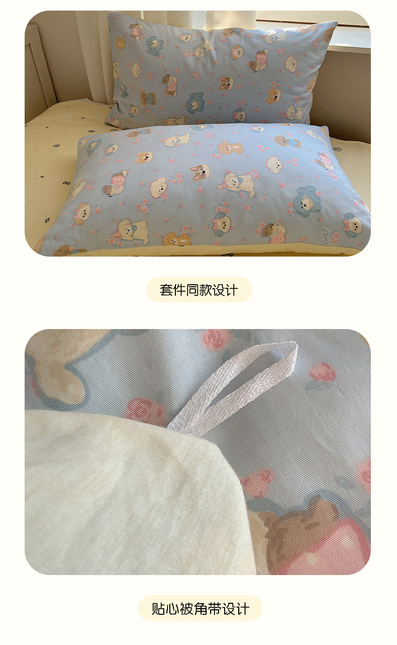 商品名称:瑞莱 (持续上新)2024冬季新款13372全棉印花四件套-卡通系列 狗狗家族(蓝)