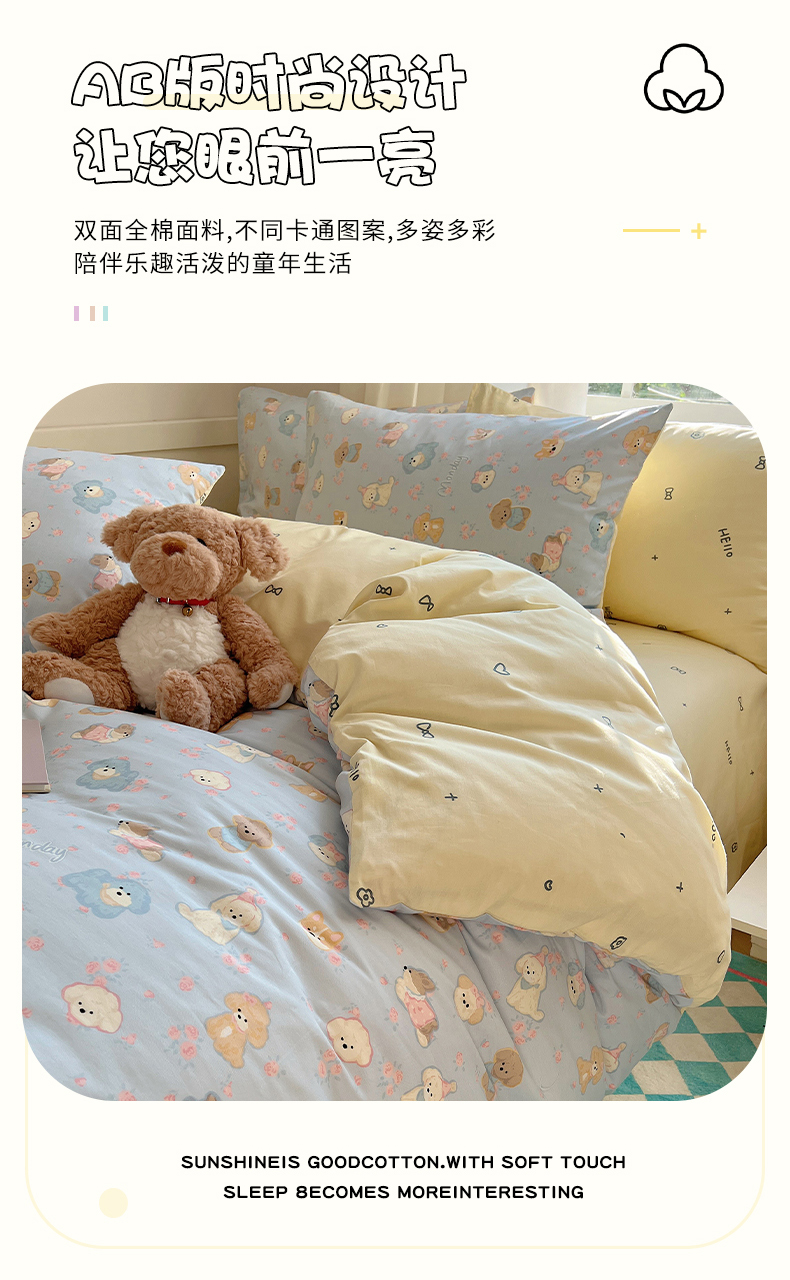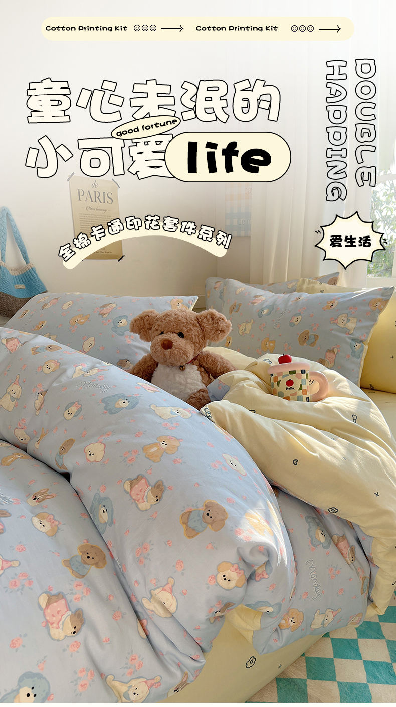 (总)瑞莱 2026春季新款全棉纯棉印花小清新萌趣系列四件套,小懒猫,KT猫,可爱猫咪,蓝花兔,路灯影院,莓果小萌,帕丁顿兔兔,企鹅家族,趣味涂鸦,甜梦日记,甜梦小精灵,甜心KT,小镇漫游记
