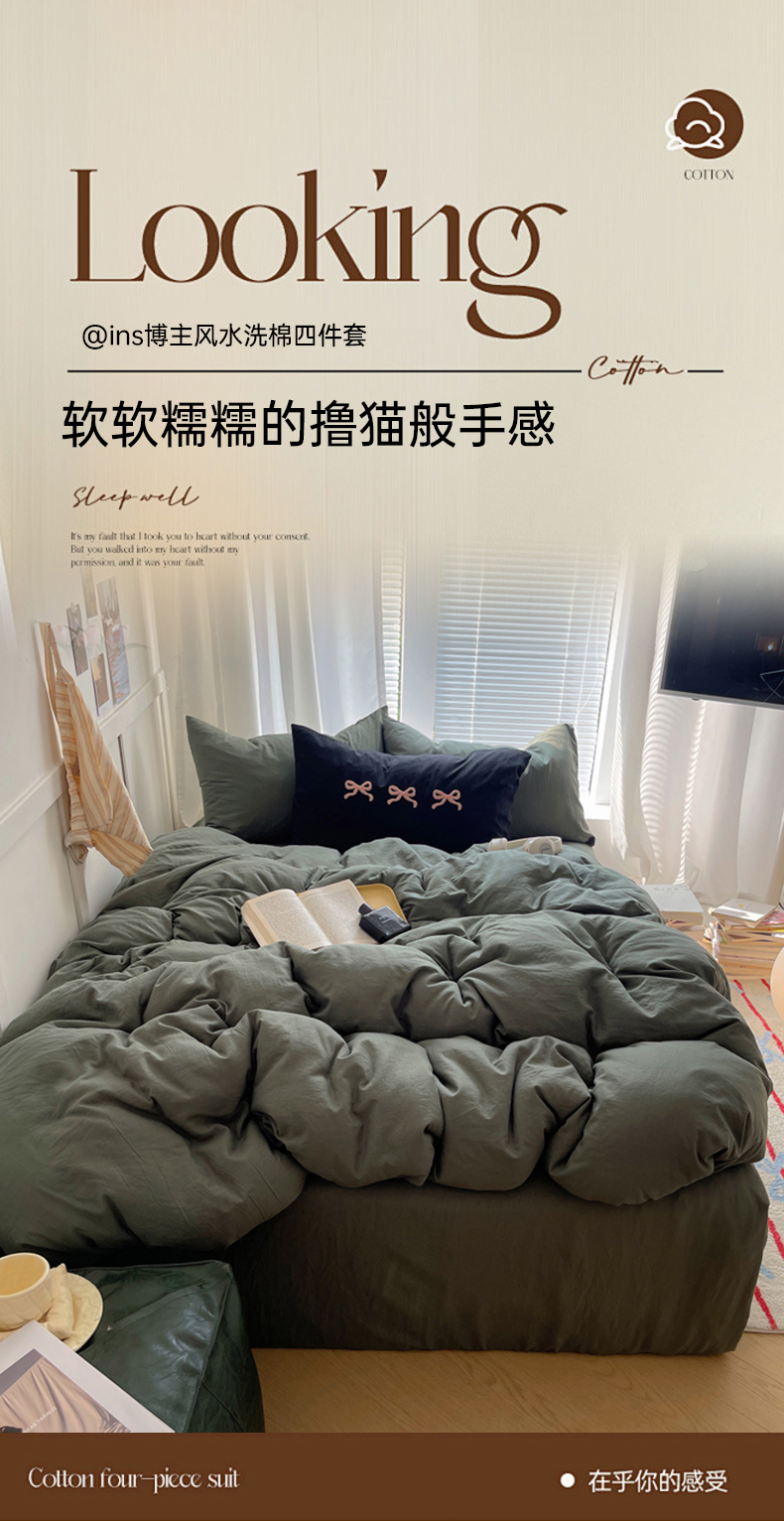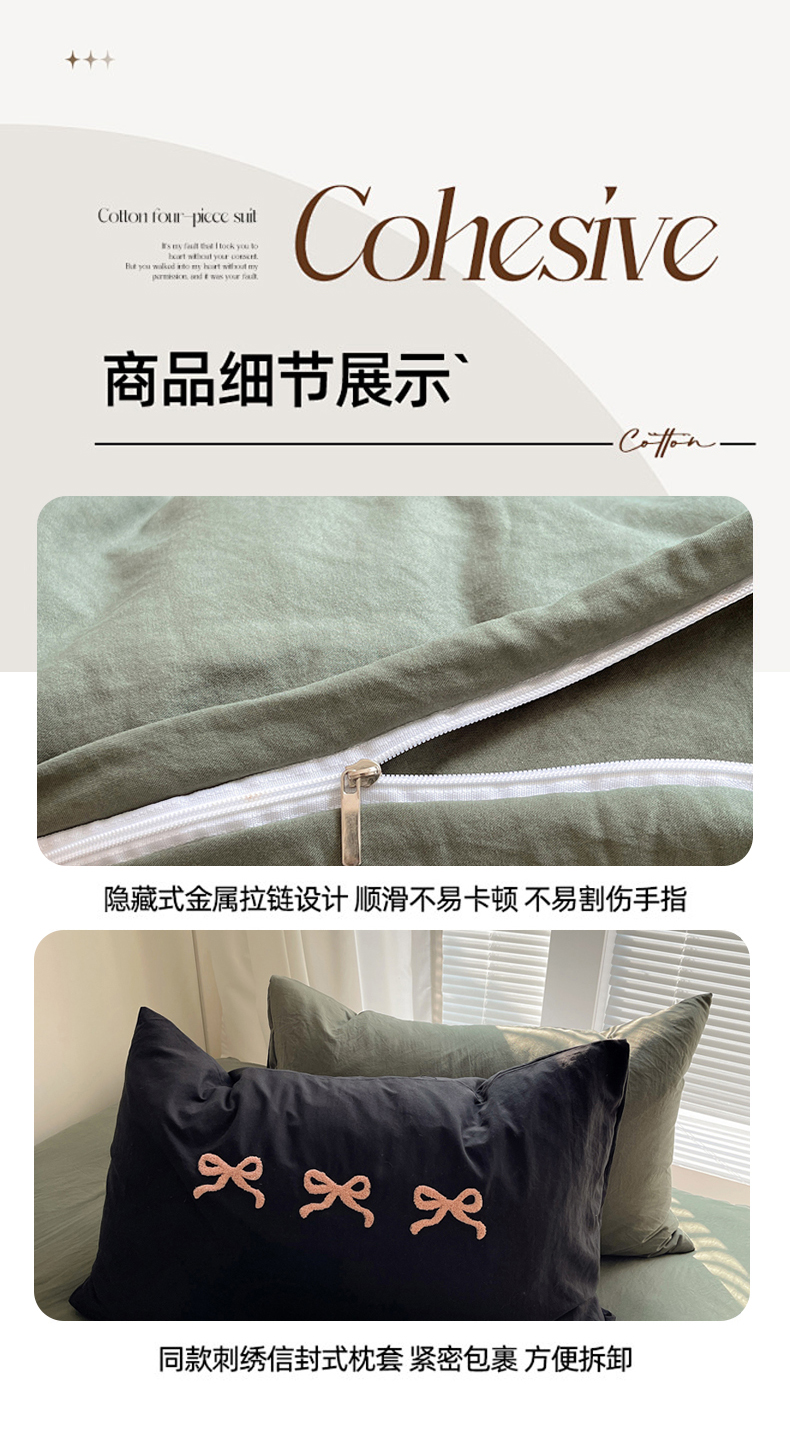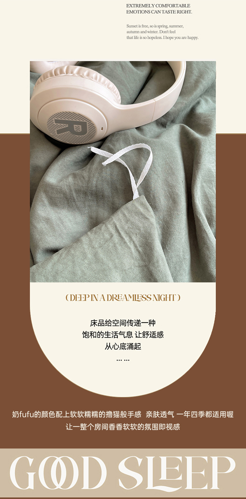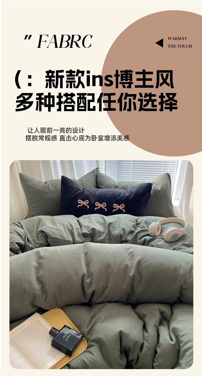 当前位置: 91家纺网 > 商品网购 > 床品套件 > 四件套 > 水洗棉四件套 > 阿曼达 2024最新款奶fufu-ins博主风纯色、混搭、双色软软糯糯亲肤透气水洗m四件套(软糯舒适,非市场普通面料!!!)水洗m-茶绿