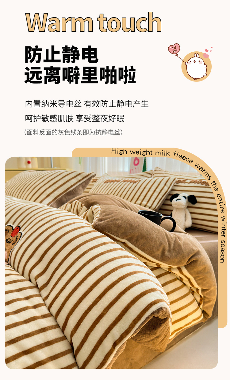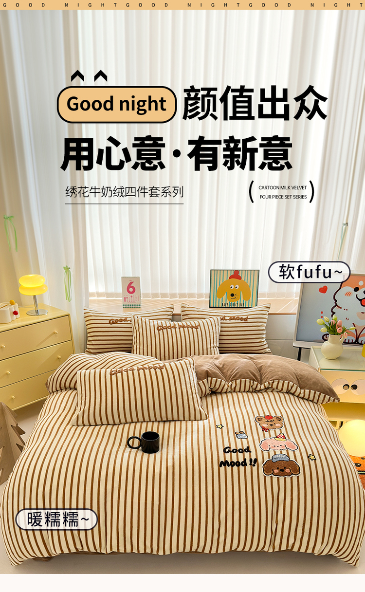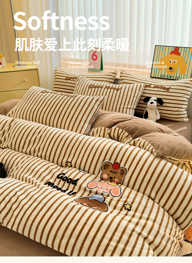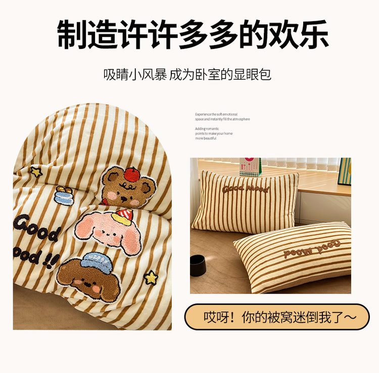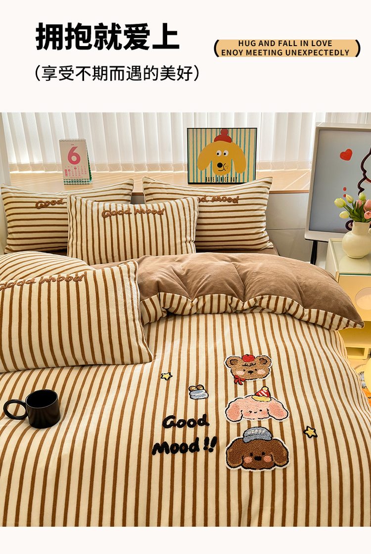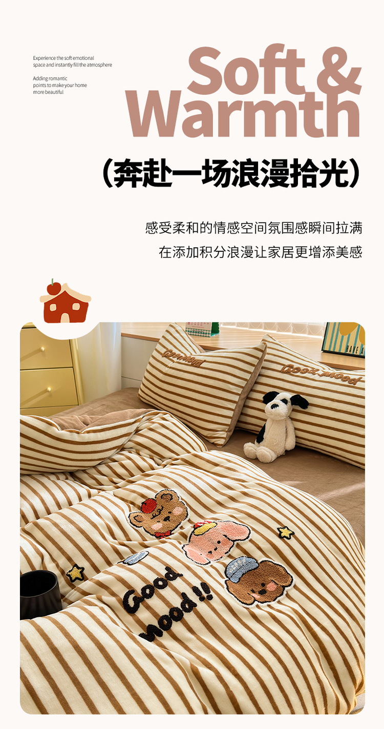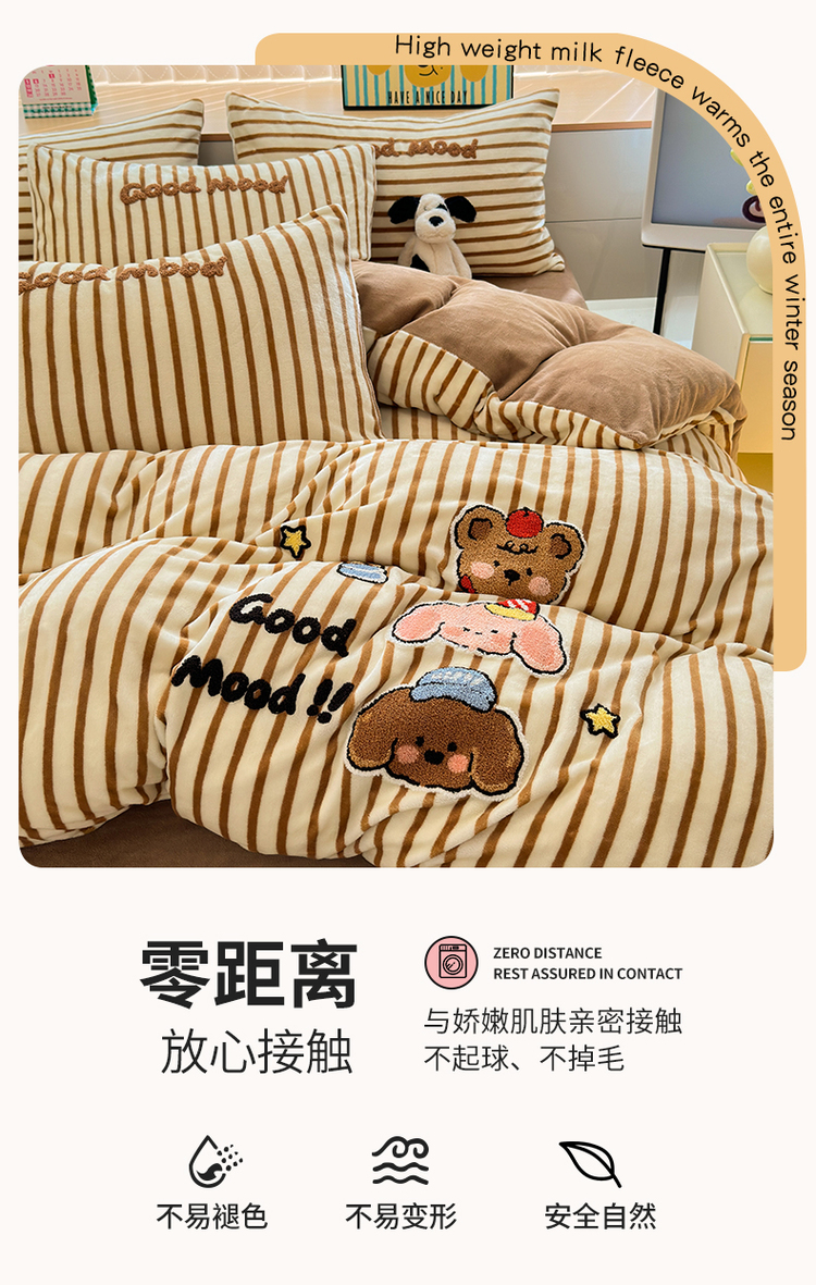 当前位置: 91家纺网 > 商品网购 > 床品套件 > 四件套 > 牛奶绒四件套 > (买家秀 爆款不断货)A类母婴级牛奶绒刺绣四件套珊瑚绒雪花绒四件套刺绣贴布绣牛奶绒绣花毛巾绣四件套 焦糖宝贝